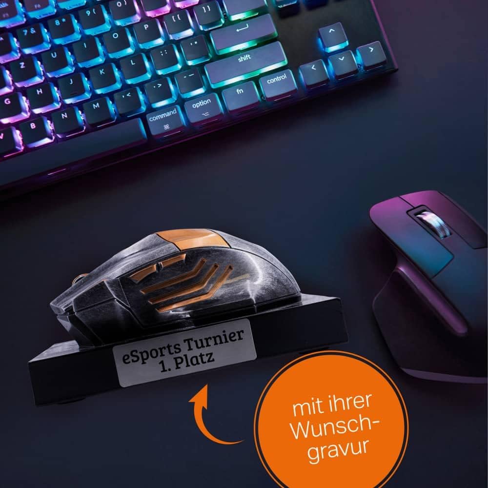 Трофей Deitert Esports с гравиране, геймърски контролер с мишка и желан текст, геймърска декорация, трофей с геймърска емблема по ваш избор - индивидуална и персонализирана идея за подарък