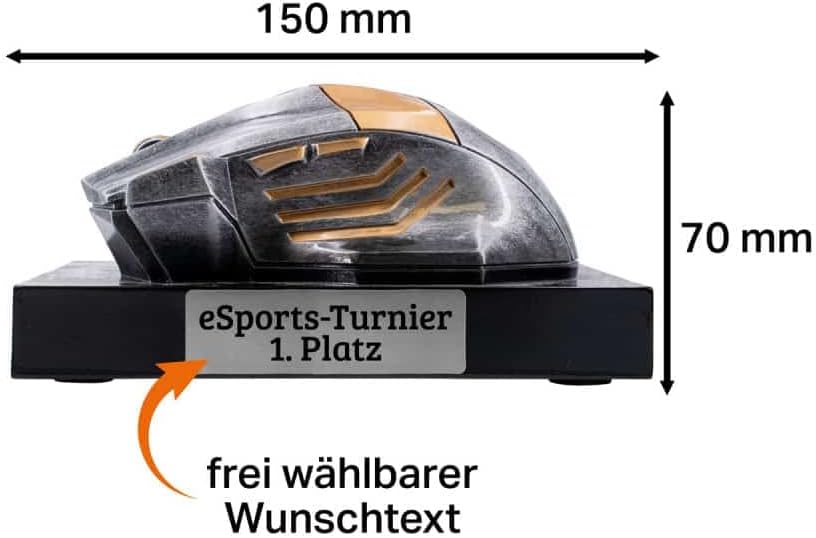 • Страхотна награда – този трофей за гравиране изглежда страхотно на вашата игрална маса, например като награда за най-добър играч или победител в турнира на местно eSports събитие.