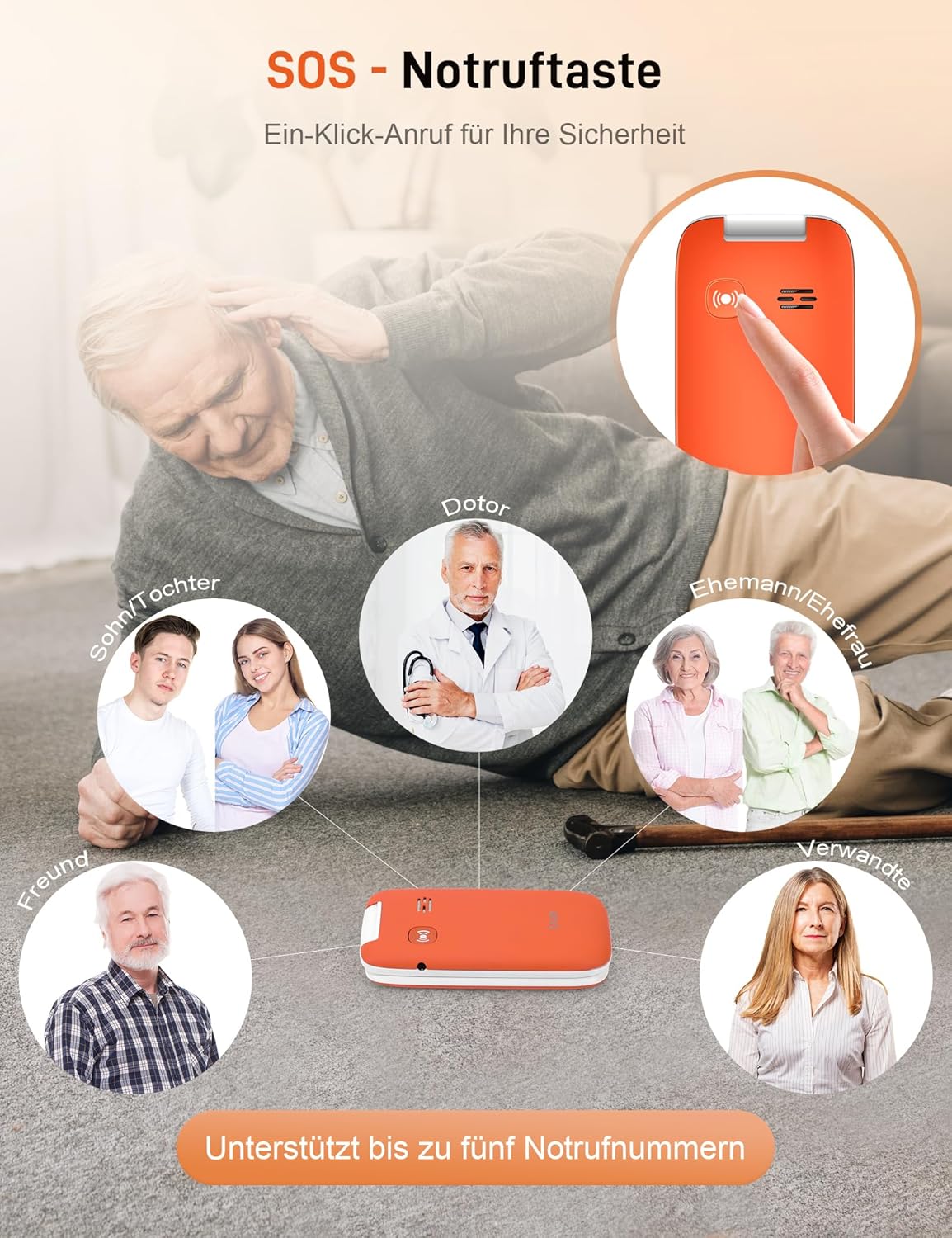 This flip phone can store 5 emergency contacts and 1 SOS message. By pressing the SOS button, a call is made to the emergency contact at critical moments and an auxiliary message is sent.