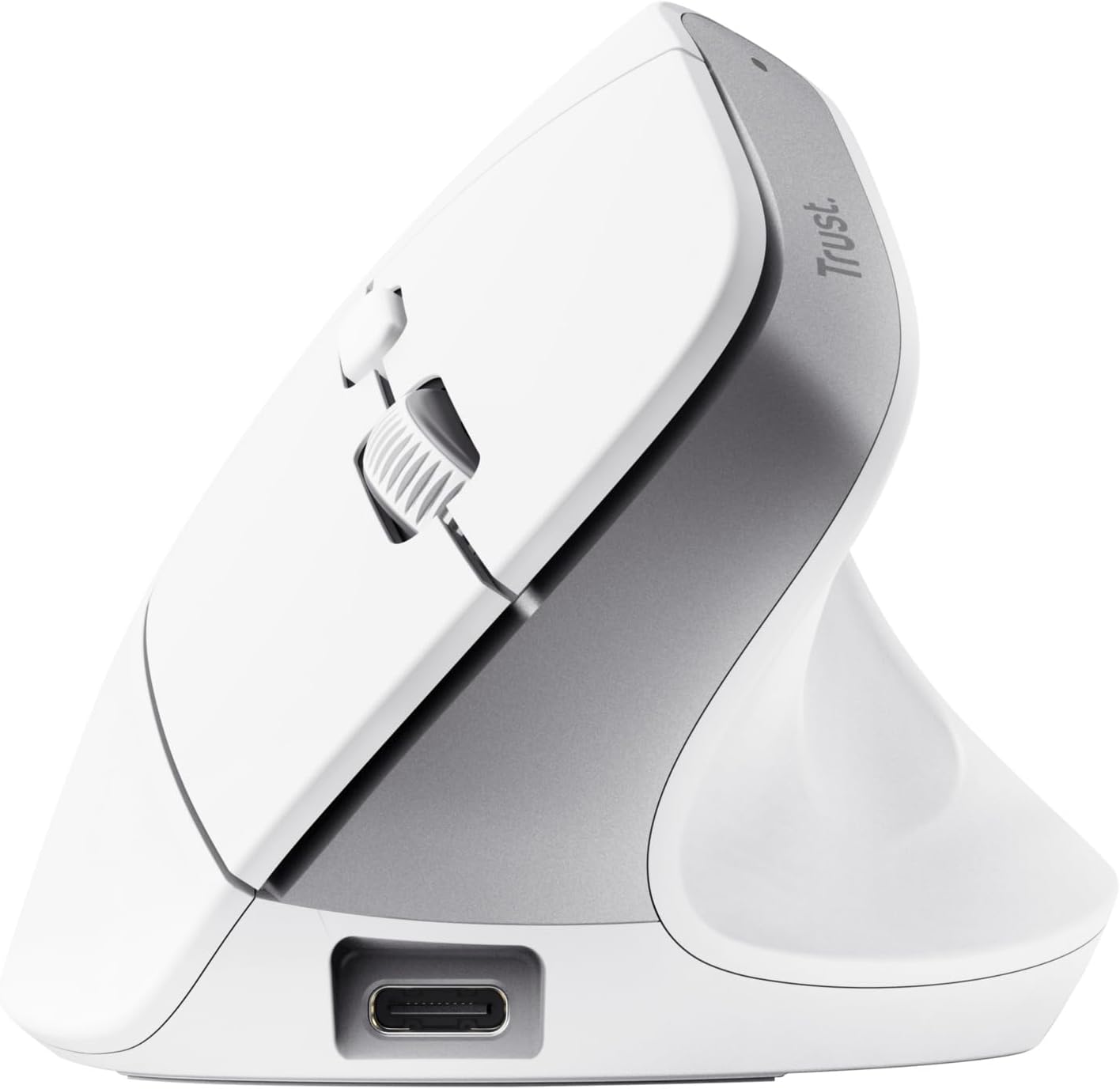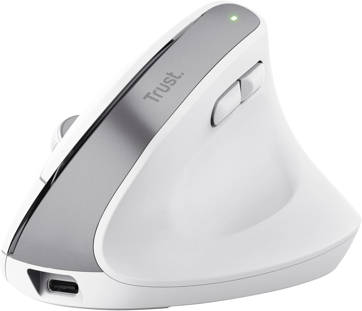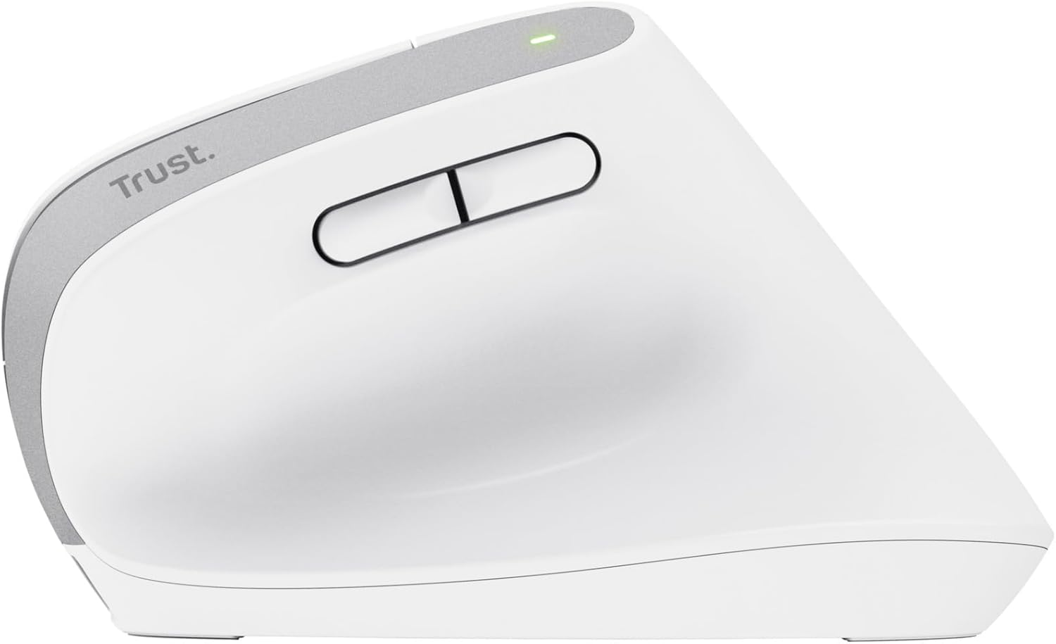 Trust Bayo+ Акумулаторна вертикална мишка Bluetooth + RF 2.4GHz, предотвратяване на синдром на ръката/тенис лакътя на мишката (RSI), 53% рециклирана пластмаса, безжична ергономична мишка за компютър, лаптоп, Mac - бяла