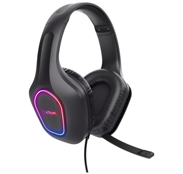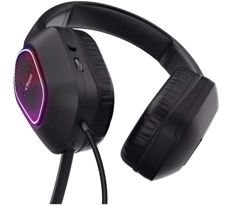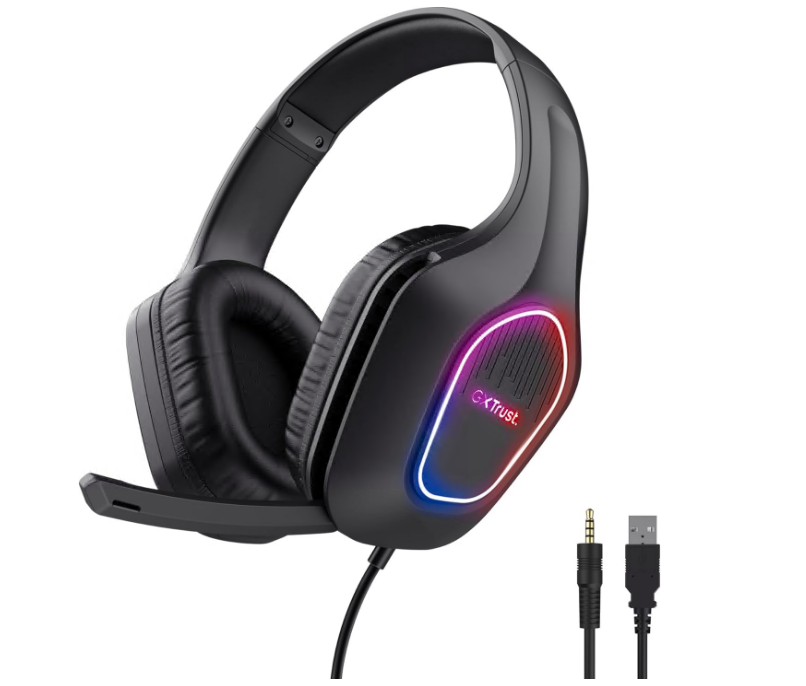 Trust Gaming GXT 419 Rayne леки геймърски слушалки за компютър/конзола, захранвани от USB LED осветление, 50 мм драйвер, 3.5 мм аудио порт, слушалки с кабел, компютър, лаптоп, черни