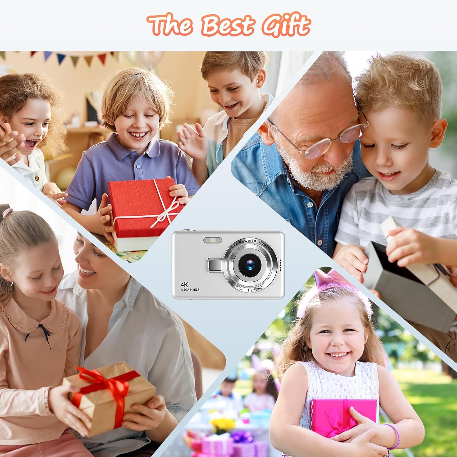 • Многофункционален цифров фотоапарат: 1080P цифров фотоапарат с мощно 16x цифрово увеличение. Джобният фотоапарат поддържа функция против разклащане, самоснимачка, разпознаване на лица, непрекъснат запис и запълваща светлина. Всички функции ви осигуряват по-добро изживяване при запис и са по-лесни за използване от деца, ученици и начинаещи.