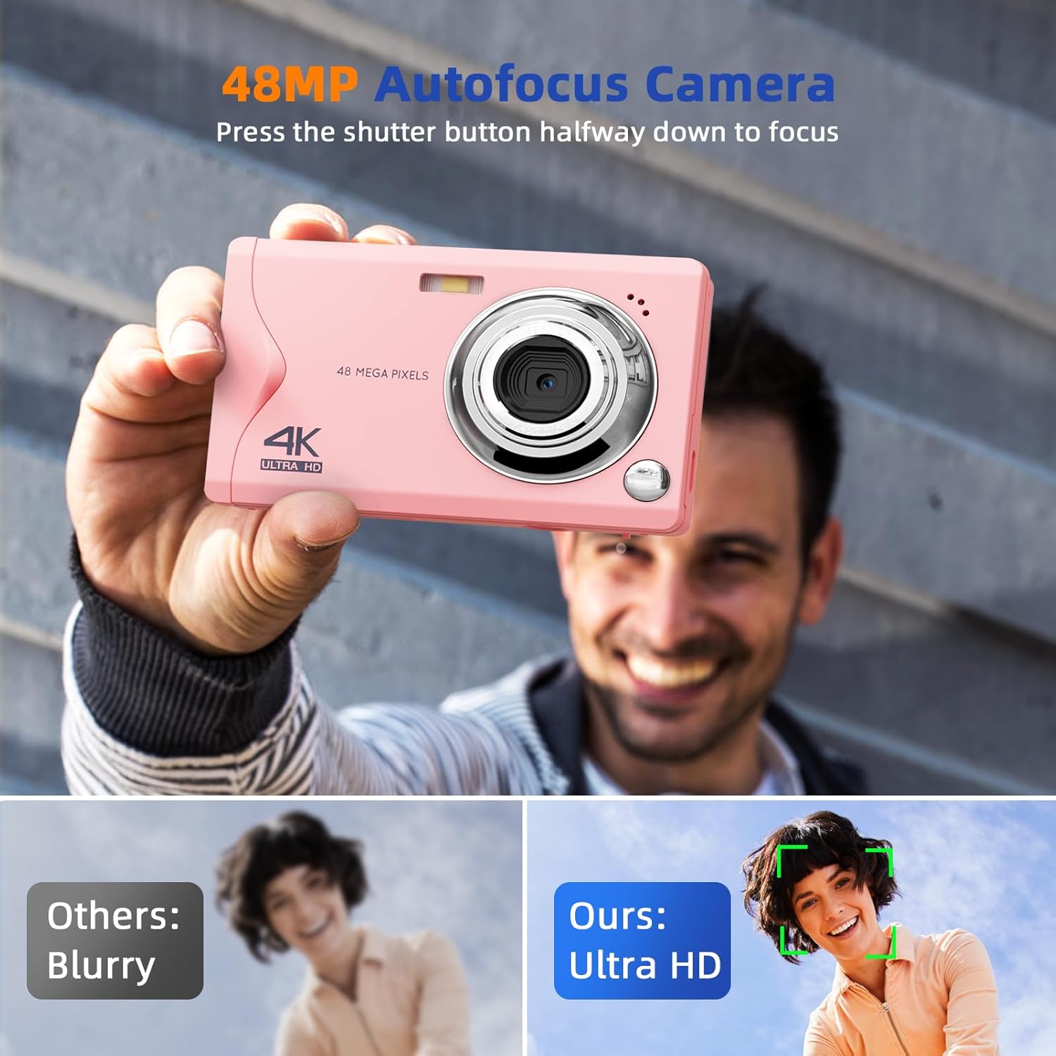 • 48-МЕГАПИКСЕЛОВ И 1080P HD ЦИФРОВ ФОТОАПАРАТ: Този цифров фотоапарат разполага с 48-мегапикселова HD камера с резолюция 1080P и 16x цифрово увеличение за по-широк ъгъл на снимане. Това значително подобрява яснотата на изображенията и видеоклиповете, така че можете лесно да уловите всеки детайл в обектива на камерата.