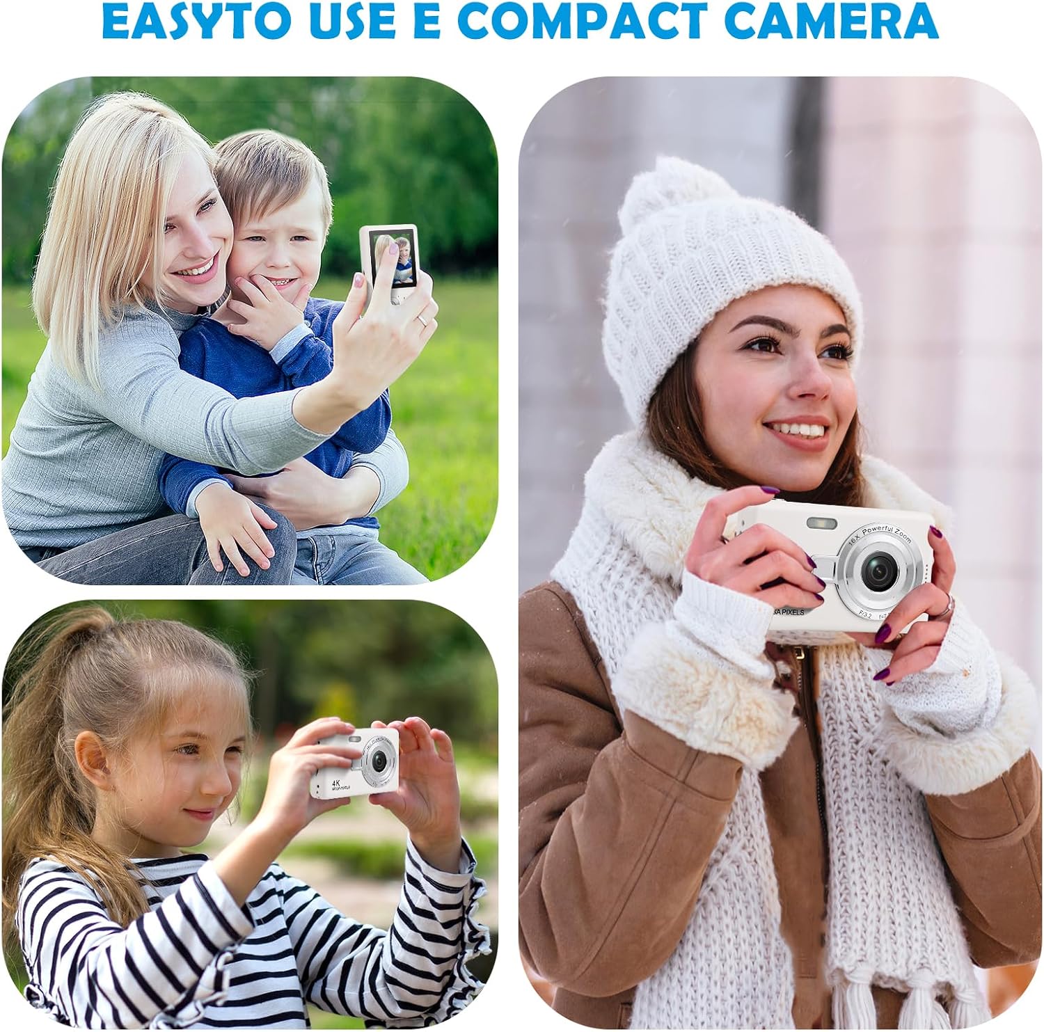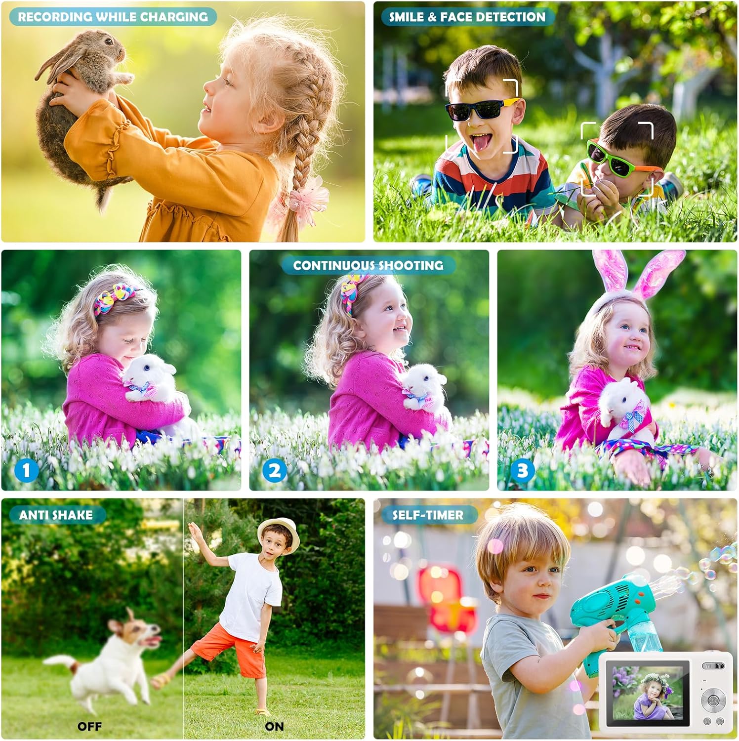 Този детски дигитален фотоапарат е много сладък, компактен и лек. С издръжливата презрамка за носене, децата могат да закачат фотоапарата на врата си и да го вземат навсякъде, което го прави лесен за носене по време на дейности на открито, като пикници, къмпинг и туризъм.