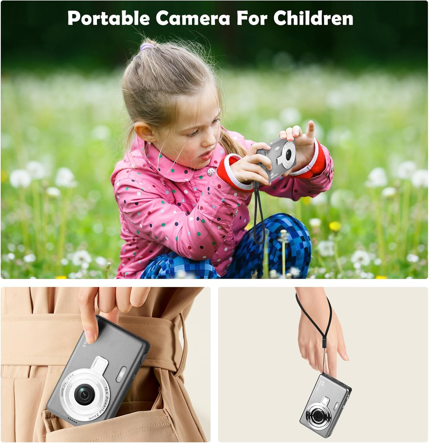 Този детски дигитален фотоапарат е много сладък, компактен и лек. С издръжливата презрамка за носене, децата могат да закачат фотоапарата на врата си и да го вземат навсякъде, което го прави лесен за носене по време на дейности на открито, като пикници, къмпинг и туризъм.