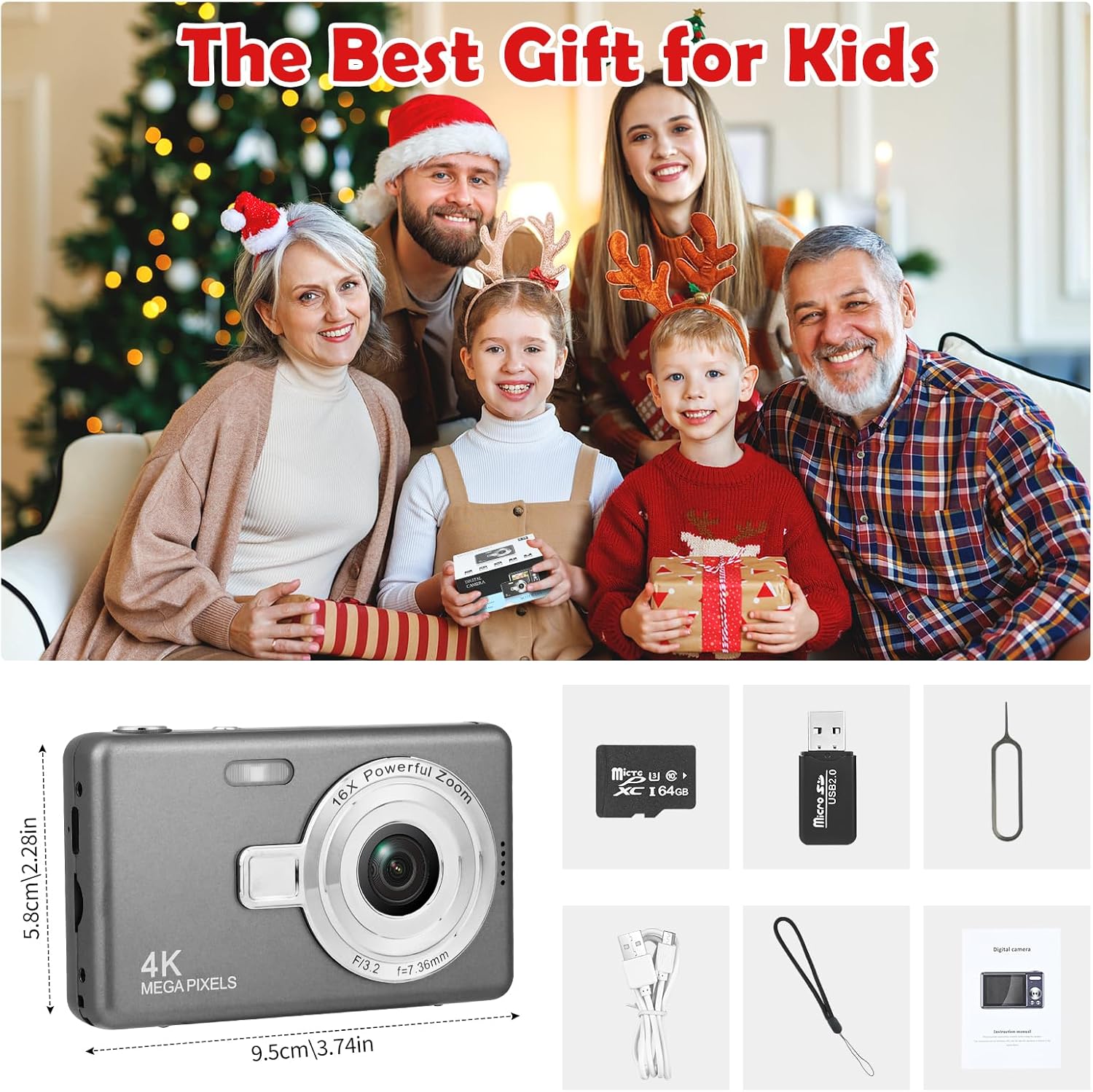 Детски фотоапарат, дигитален фотоапарат с 2.4-инчов дисплей, подарък за начинаещи любители на фотографията.