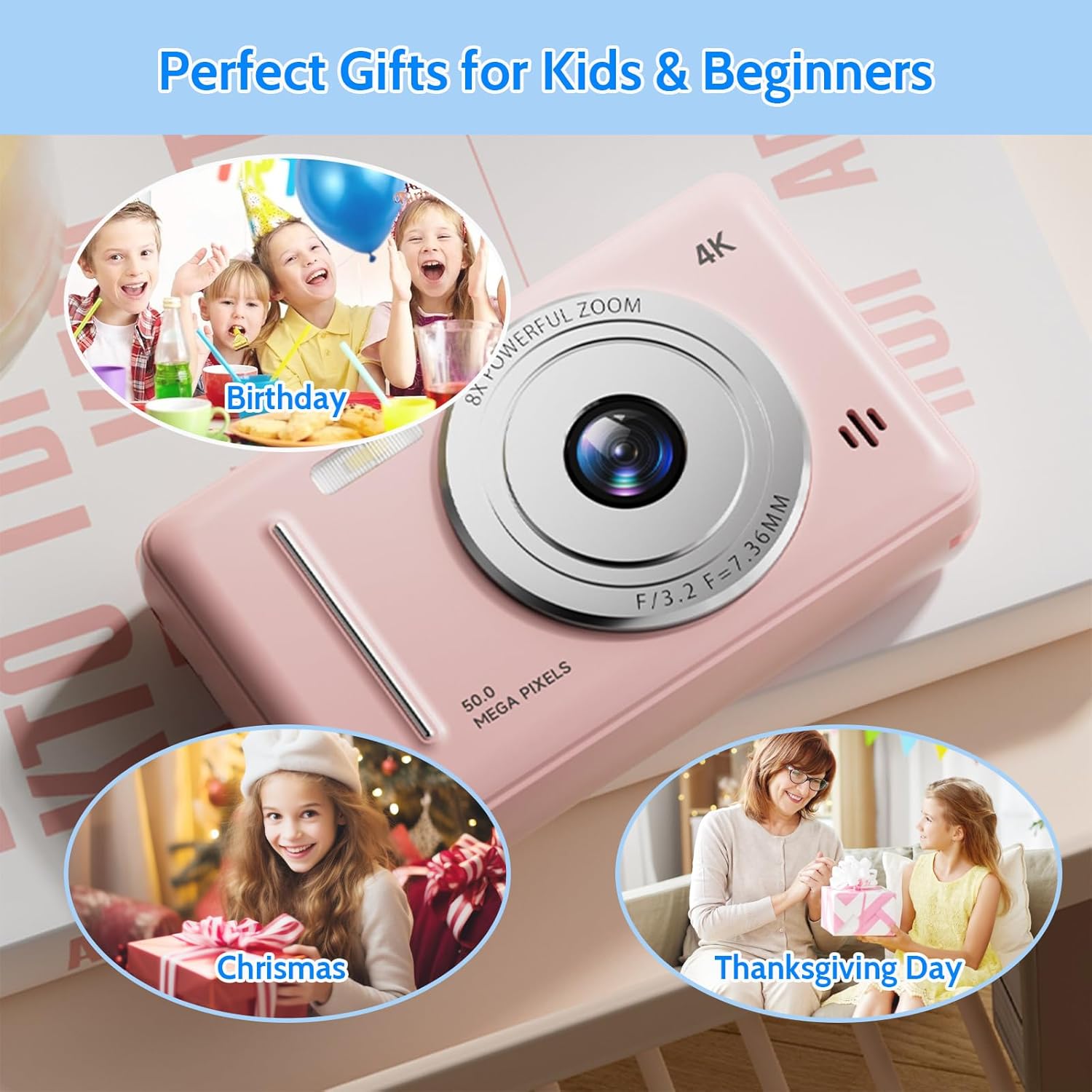 1 x 4K Digital Camera, 1 x 32GB High Speed SD Card, 1 x Card Reader, 1 x USB Cable, 1 x Lanyard, 1 x User Manual, 1 x Pin