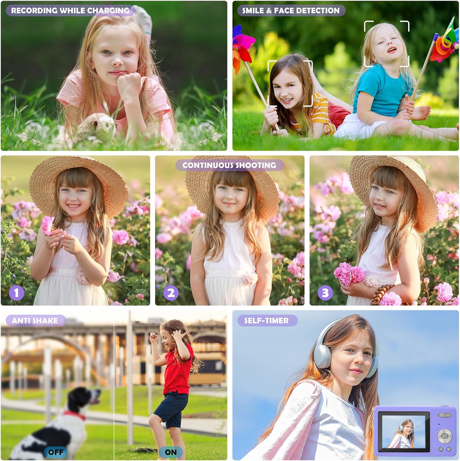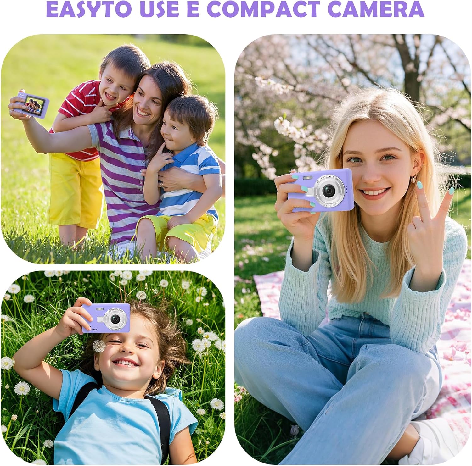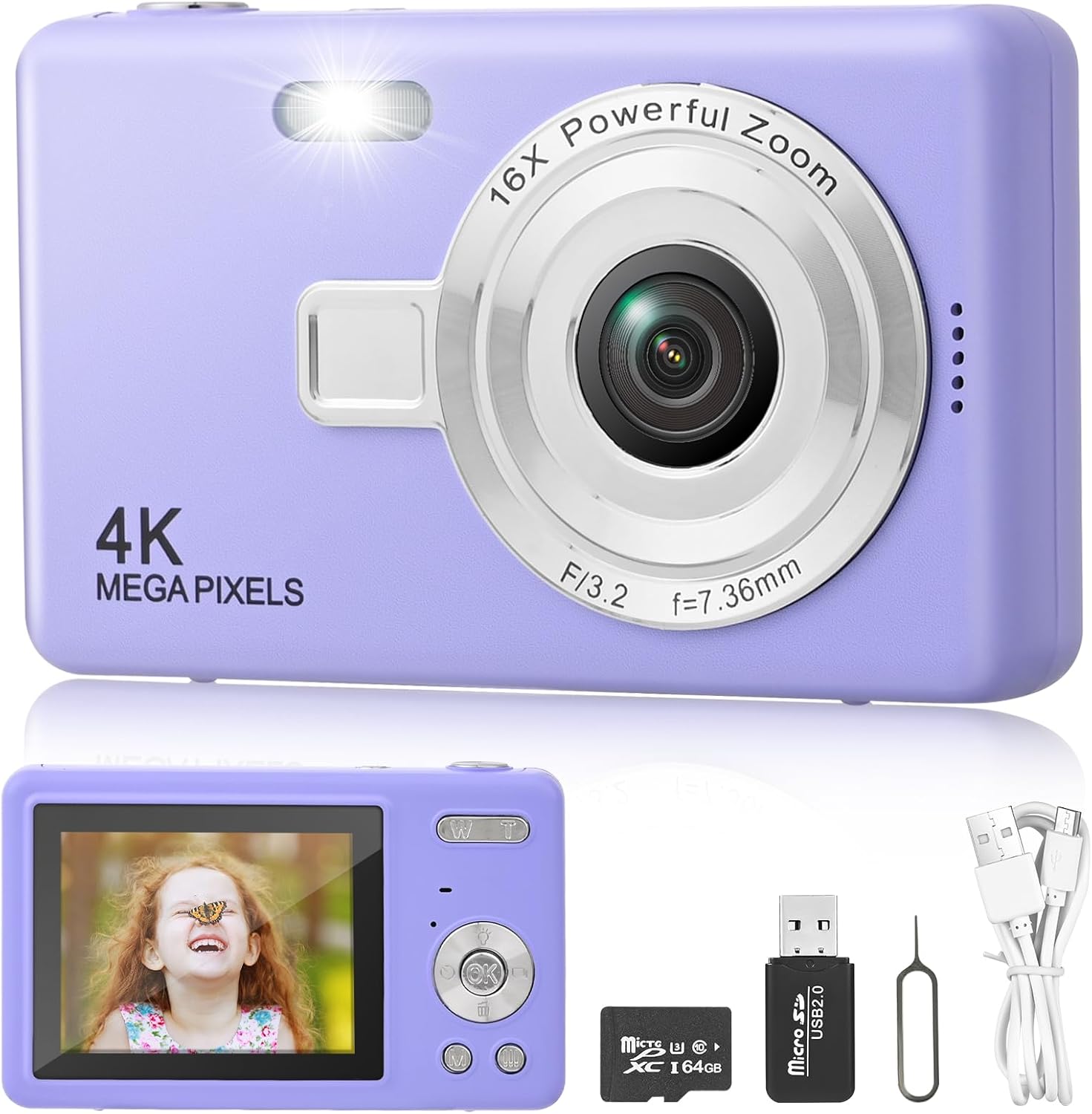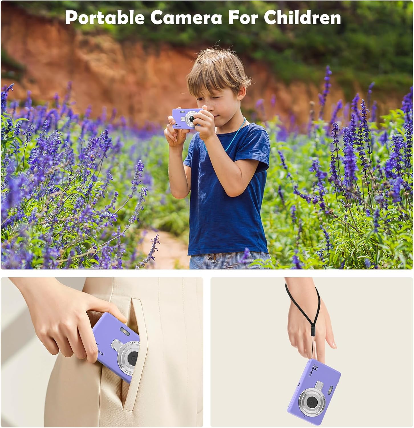 Този детски дигитален фотоапарат е много сладък, компактен и лек. С издръжливата презрамка за носене, децата могат да закачат фотоапарата на врата си и да го вземат навсякъде, което го прави лесен за носене по време на дейности на открито, като пикници, къмпинг и туризъм.