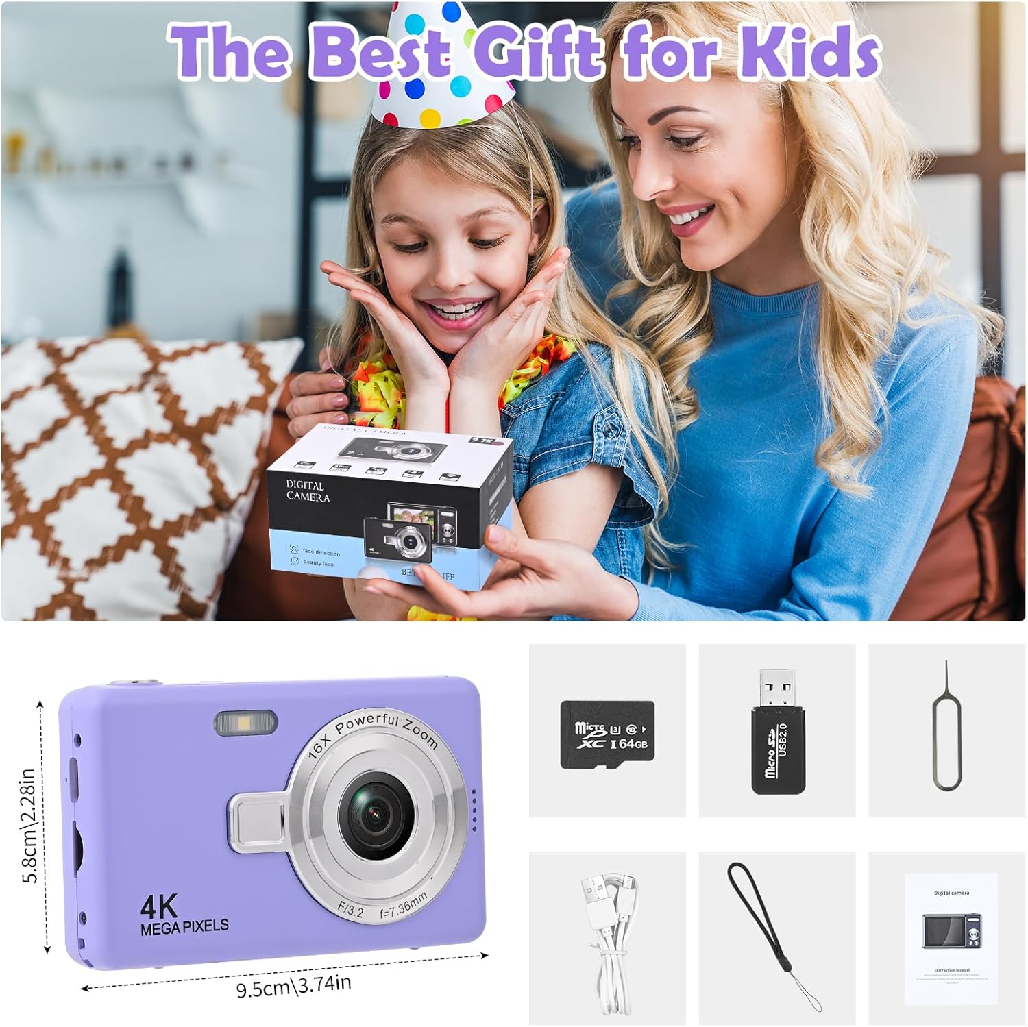 Our children's camera will bring your children more fun and fully develop their vision and creativity. It is a perfect gift for boys and girls aged 3-12 years.