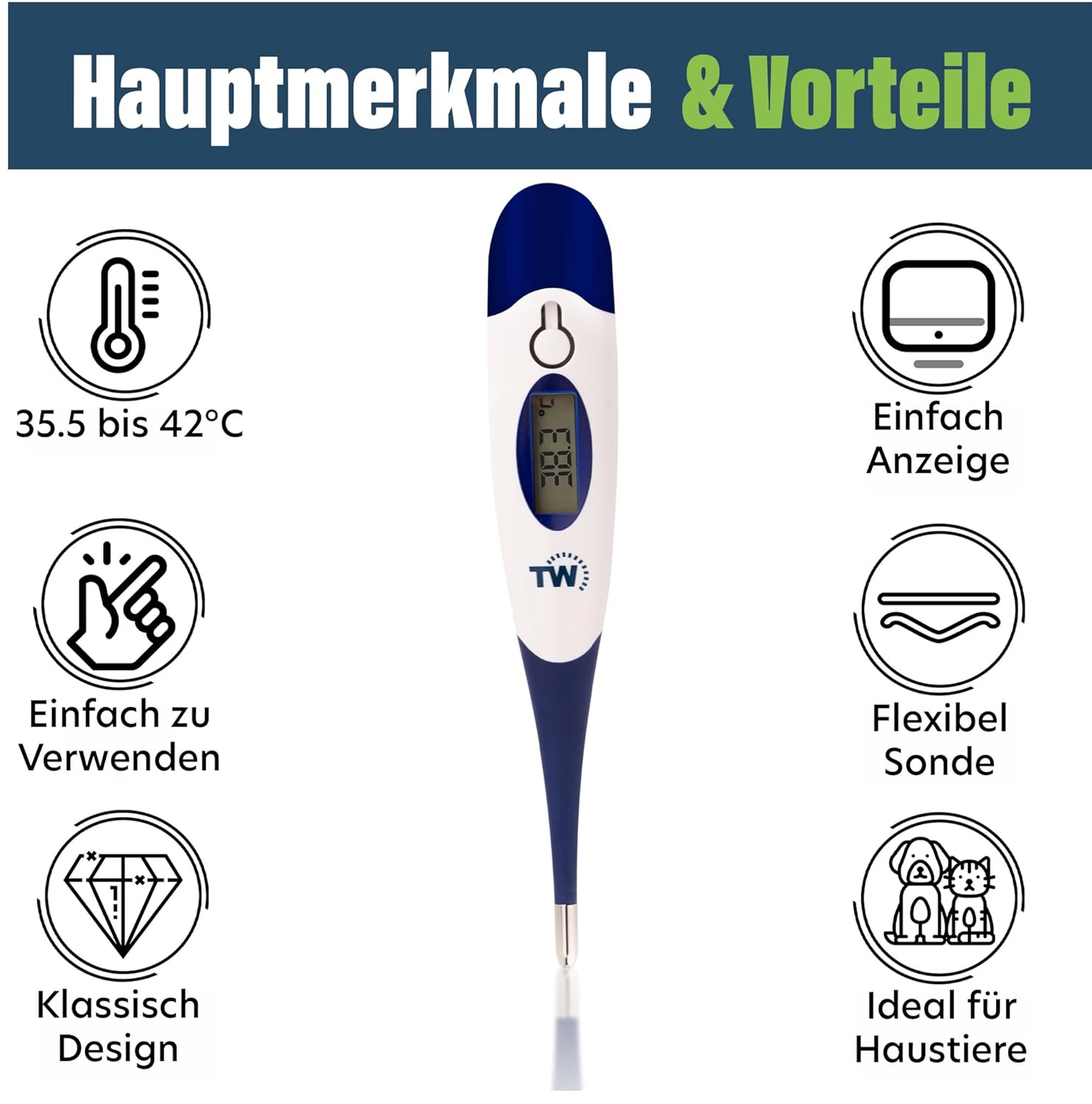 • ПОДХОДЯЩ ЗА ВЕТЕРИНАРНИ ЛЕКАРИ - Ветеринарен термометър, подходящ за ветеринарни лекари и собственици на кучета, котки, коне и други животни.