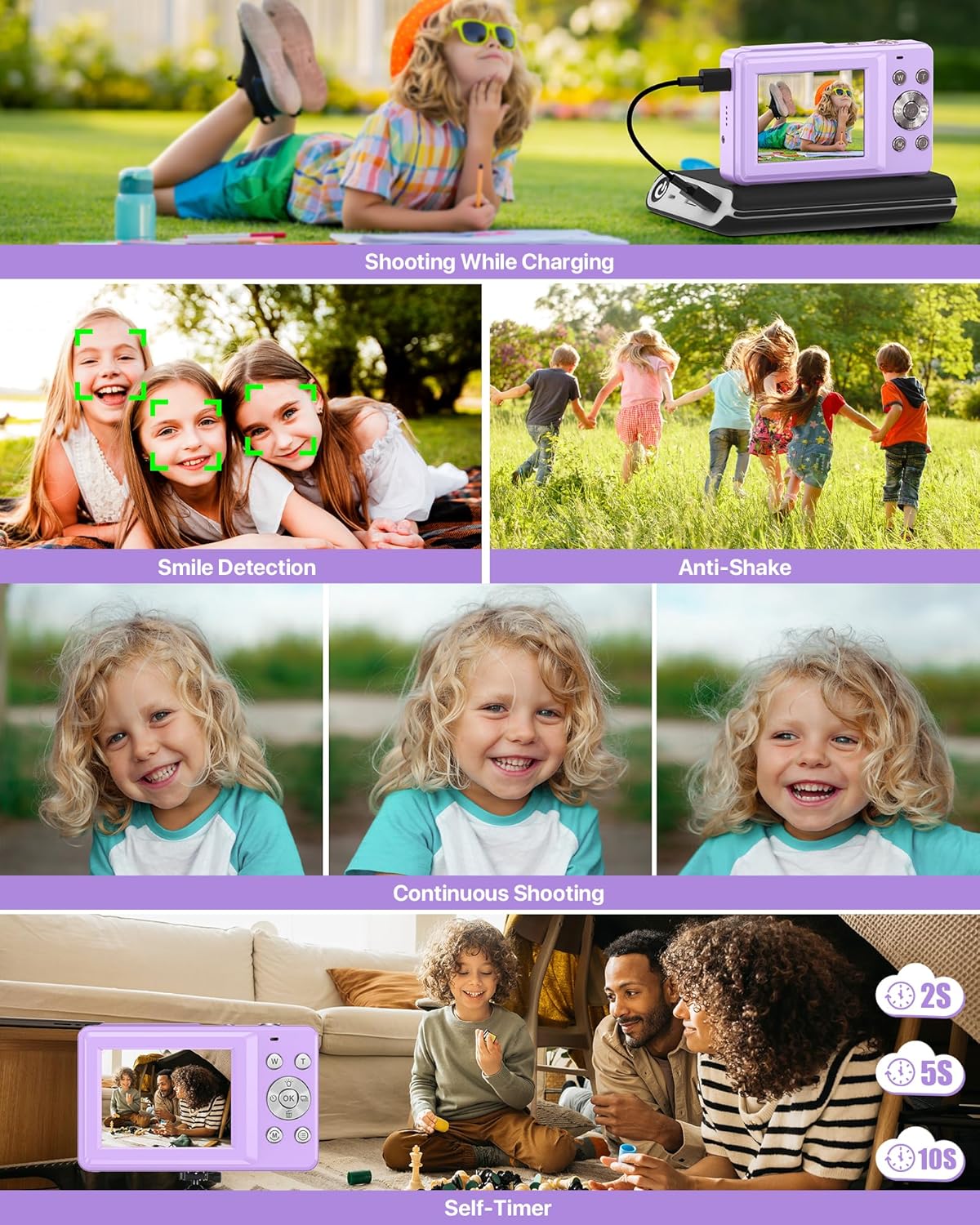 • Перфектно обслужване на клиентите: този дигитален фотоапарат за деца е изработен от висококачествени и екологични материали, безопасен и издръжлив. Този фотоапарат е идеален за деца, възрастни, тийнейджъри, студенти, момчета, момичета и начинаещи, независимо дали става въпрос за Мицва, Денят на благодарността, рожден ден или Коледа. Ако имате въпроси или предложения след покупката, не се колебайте да се свържете с нас.