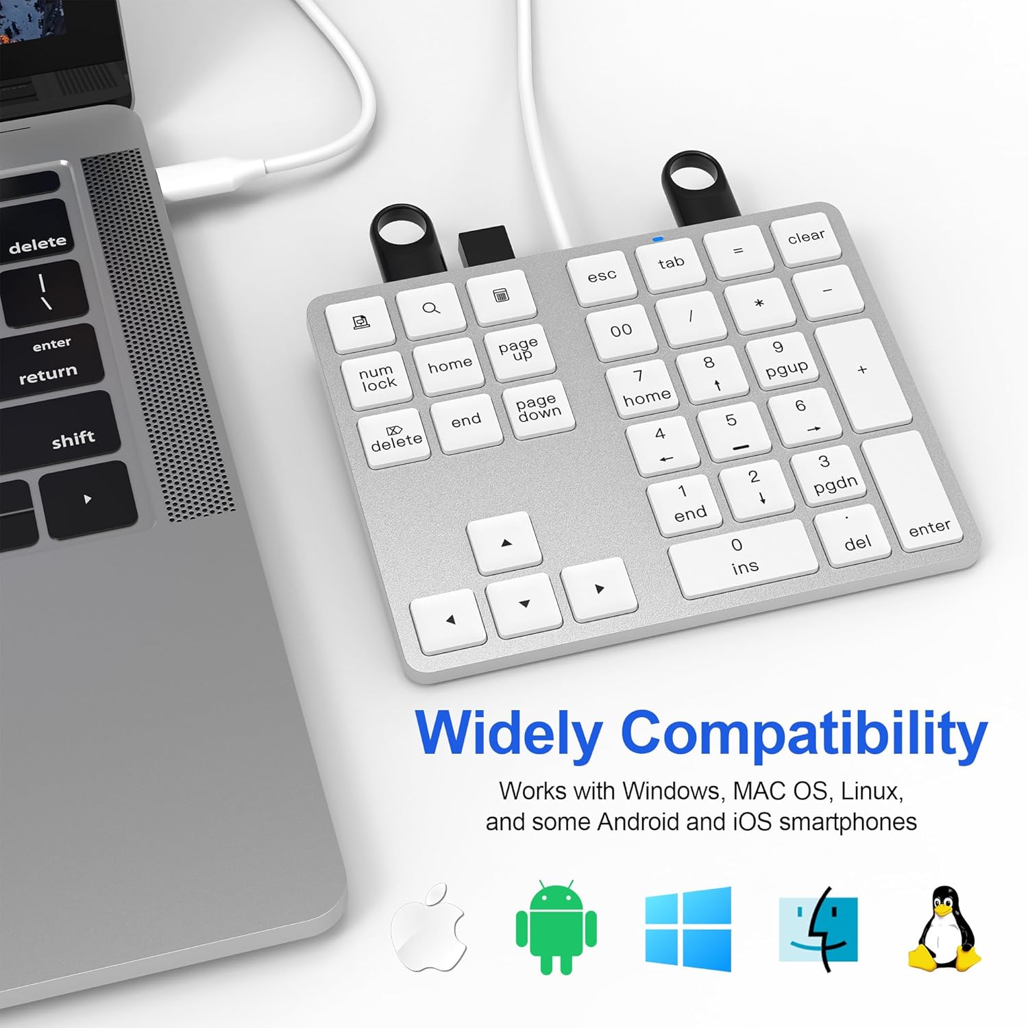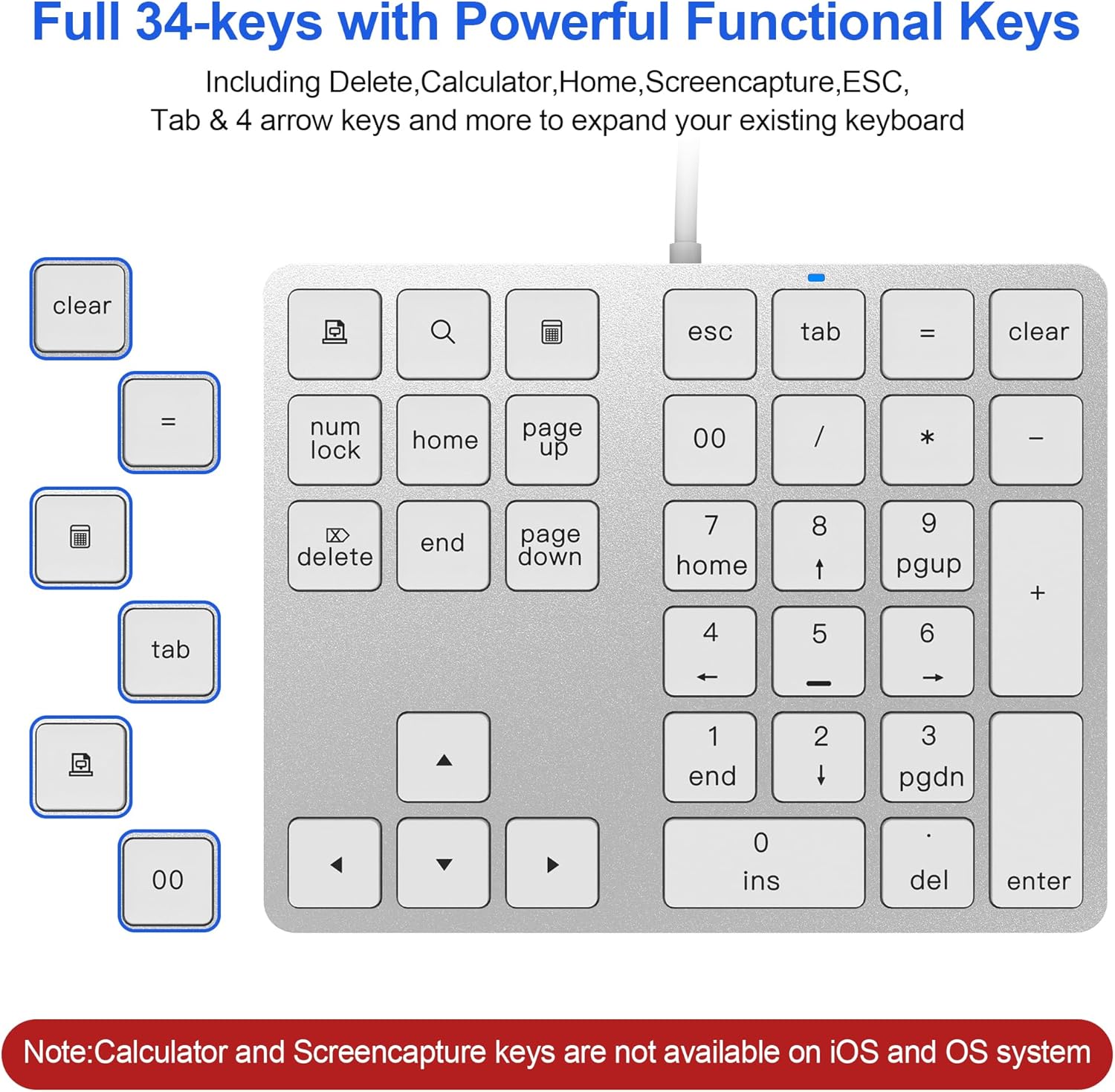 The numpad also includes important keys such as Esc, Tab, 00, Search, Backspace, Delete, Home, End, Print and four-way arrow keys.