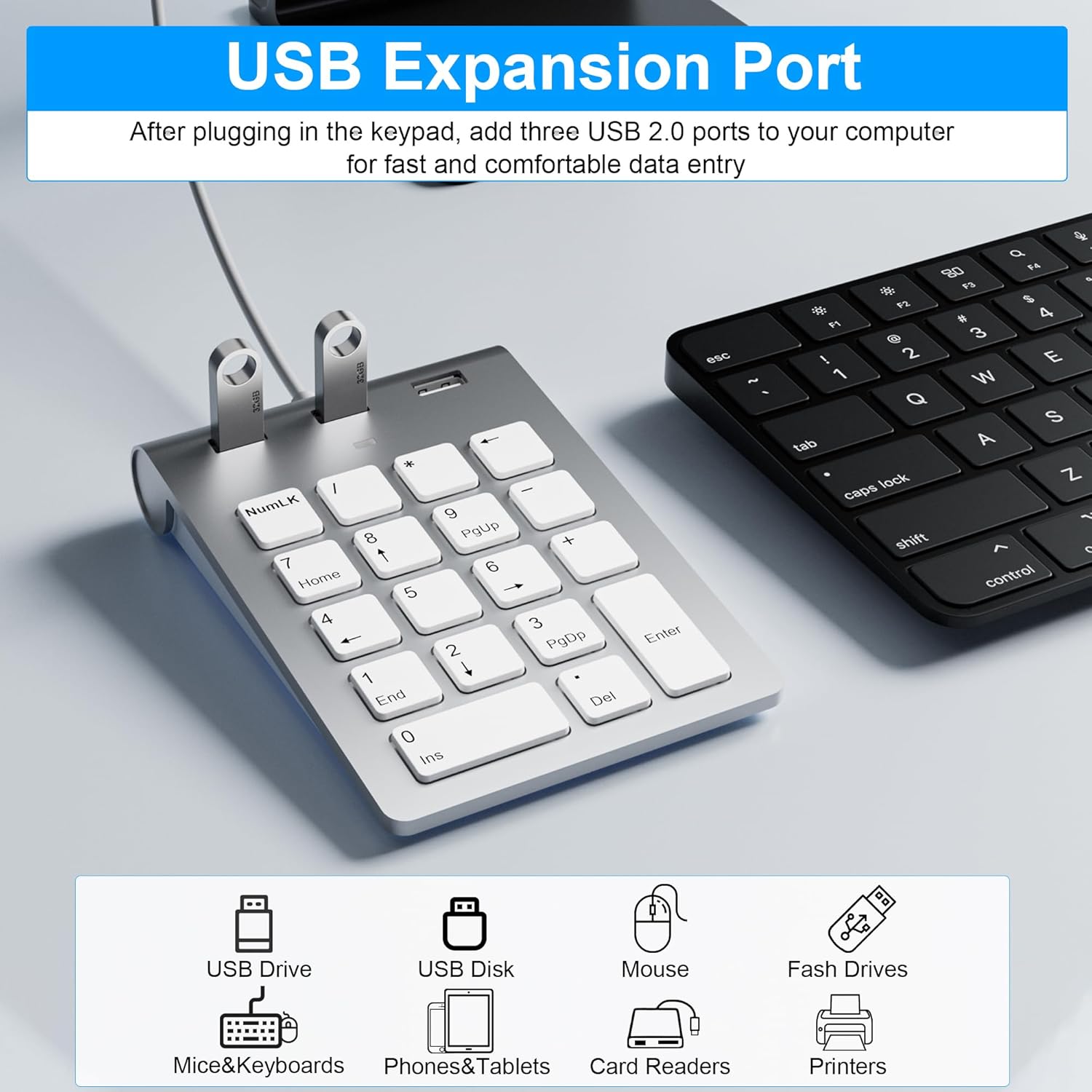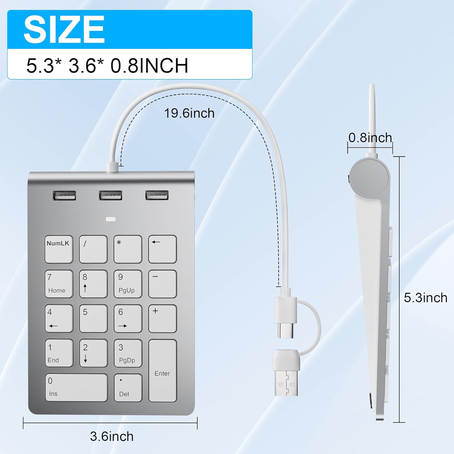 Suitable for USB portsSuitable for Type-C portsThe numeric keyboard is suitable for use on the wrist, offers a comfortable touch and is easy to install and use.