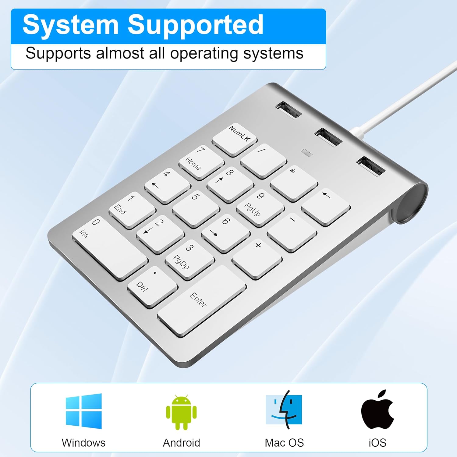 Our numeric keypad is compatible with Windows 2000, XP, Vista or Windows 7/8/98/10/11, macOS system. Applicable to PC, desktop, laptop, MacBook or other devices with USB/USB C ports.