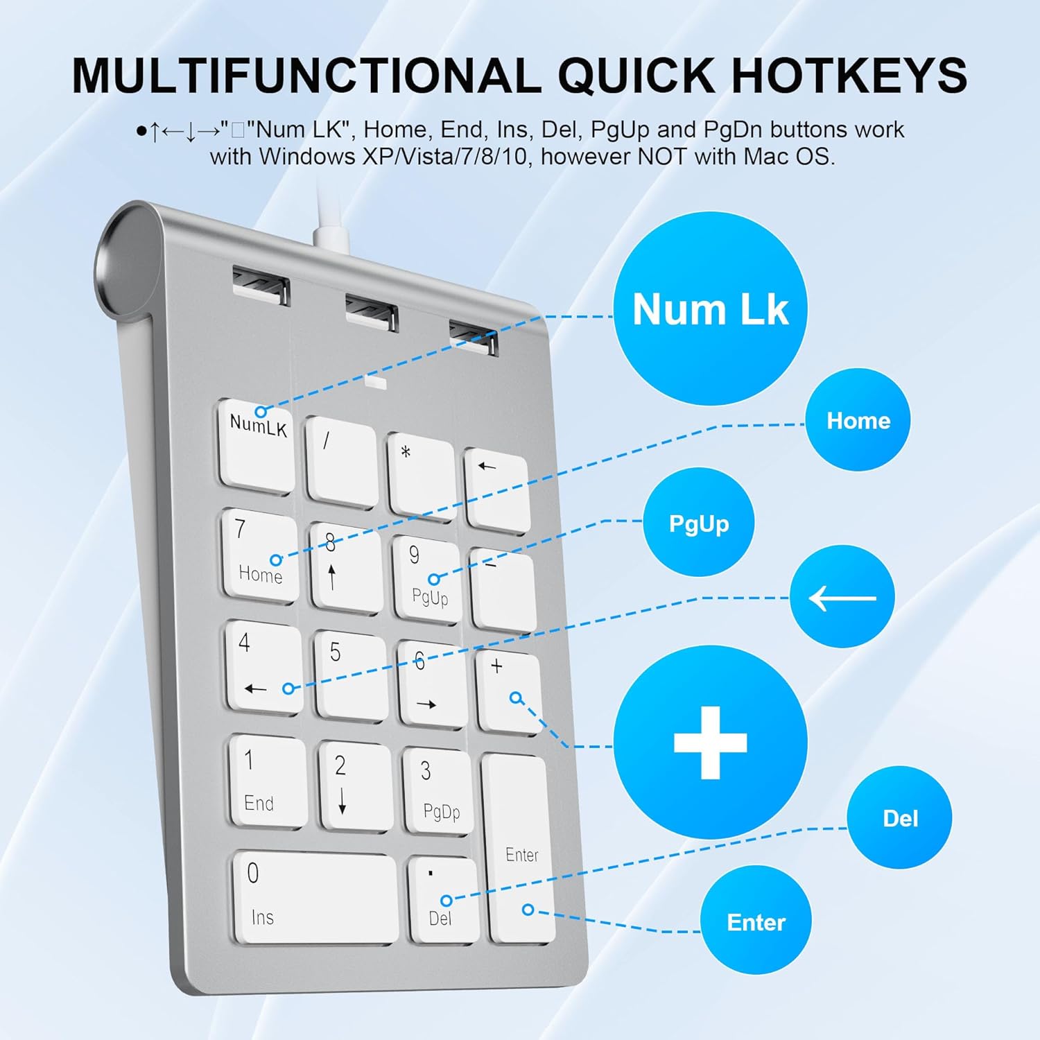 - The "↑ ← ↓ →", "Home", "End", "Ins", "Delete", "PgUp" and "PgDn" buttons work on Windows XP/Vista/7/8/10, but NOT on Mac OS - The "Num Lk" button works on Windows XP/Vista/7/8/10, but NOT on Mac OS