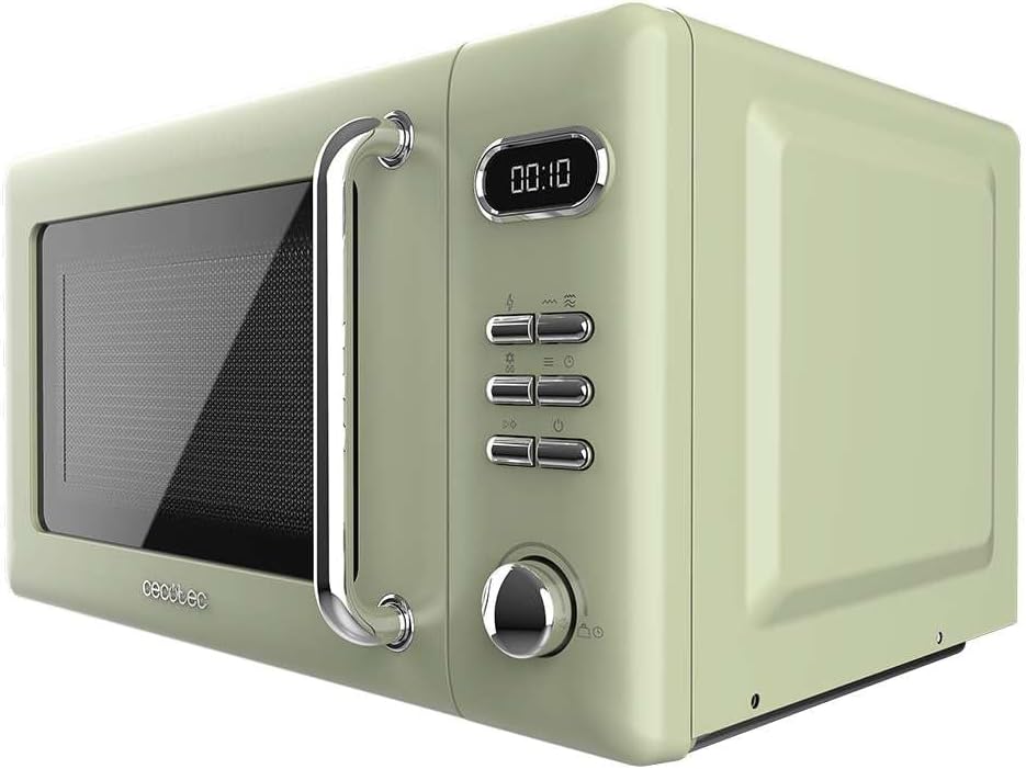 Цифрова микровълнова фурна Cecotec Proclean 5110 Retro Green с грил, 700 W на 5 нива, таймер до 60 минути, 8 програми и режим на размразяване, винтидж дизайн в зелено