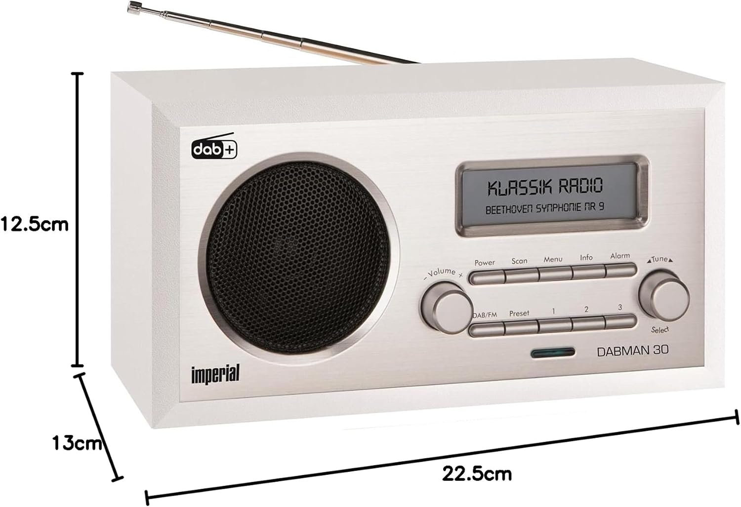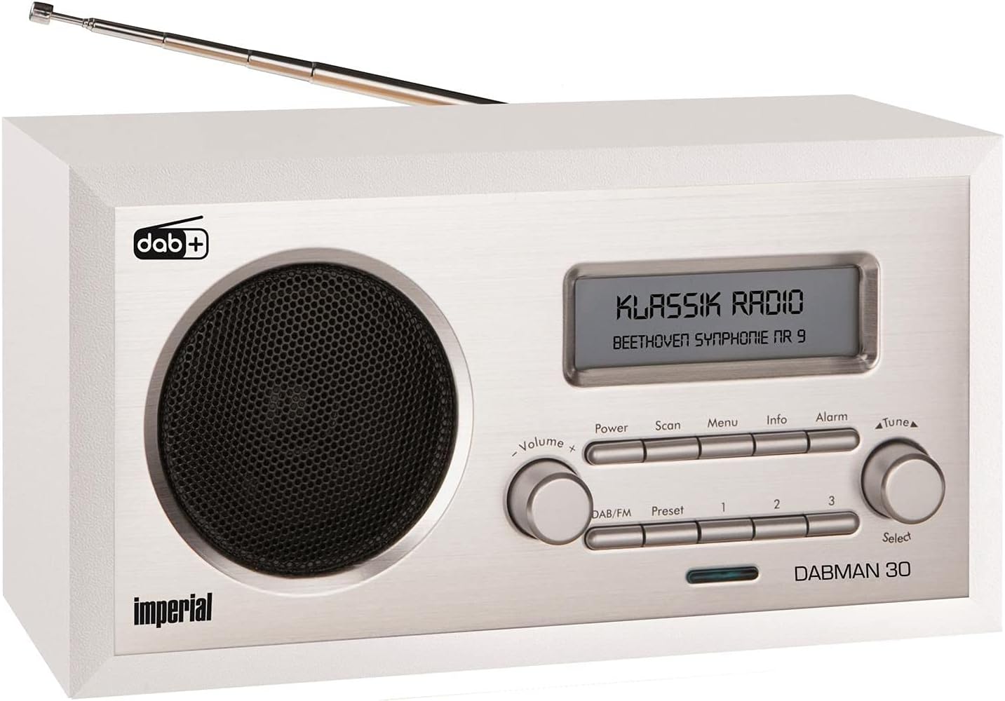Функцията за аларма е друг акцент на Imperial Dabman 30. Времето и звукът на алармата могат лесно да се програмират, така че радиото да може да се използва и като будилник.