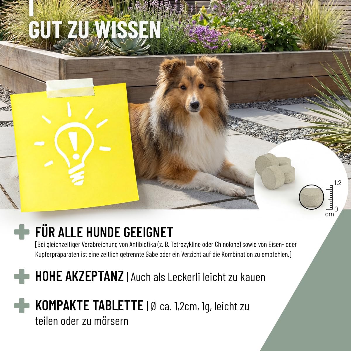 Кучета до 15 кг: 1 таблетка на ден | За всеки допълнителни 10 кг: 1 допълнителна таблетка | Препоръчителното дневно количество е идеално да се раздели на всеки ден. Таблетките могат да се смесят с дневната храна или да се предложат като лакомство.