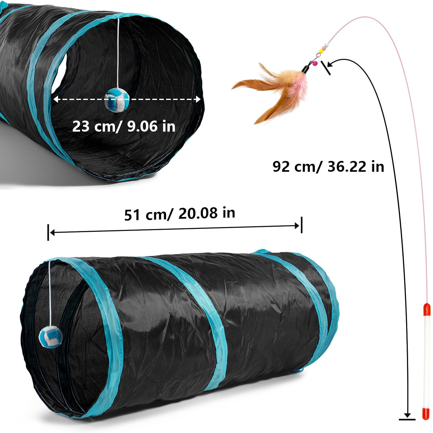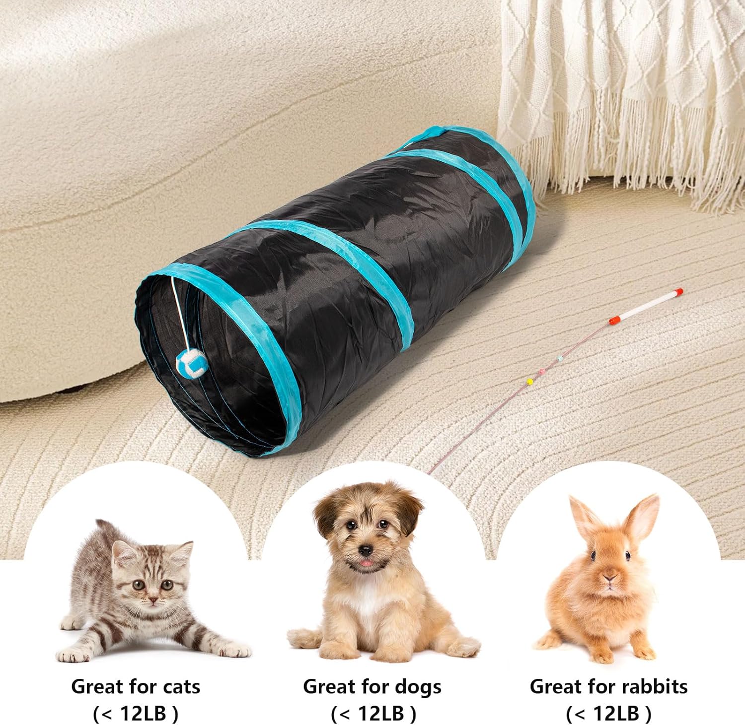 • Fhodigogo играчка за котки, тунел за котки, играчка за котки, играчка за кучета, тунел за игра, 3-посочен тунел за игра за домашни любимци за котенца, кученца, зайци, малки кучета
