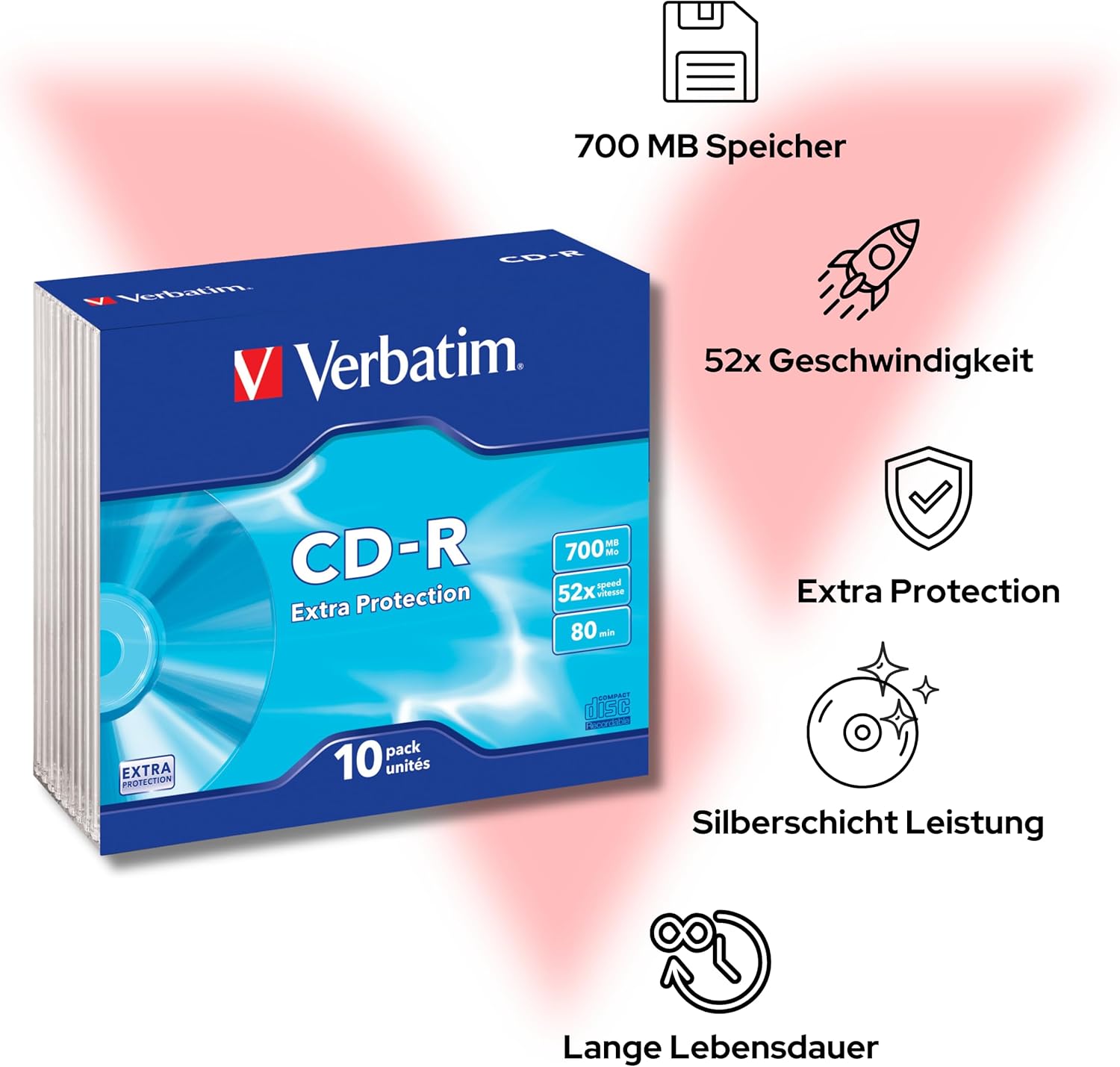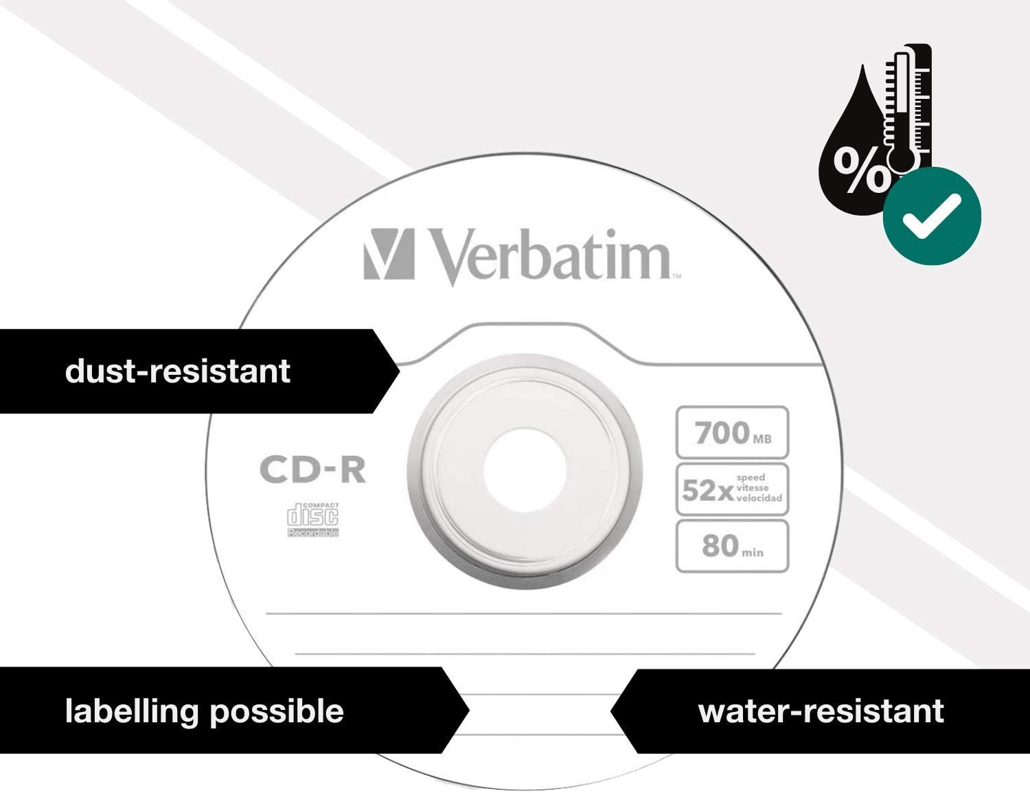 • Доживотно съхранение: висококачествените CD дискове Verbatim са оптималното решение за дългосрочно и сигурно съхранение на вашите важни файлове, като снимки, видеоклипове и документи.