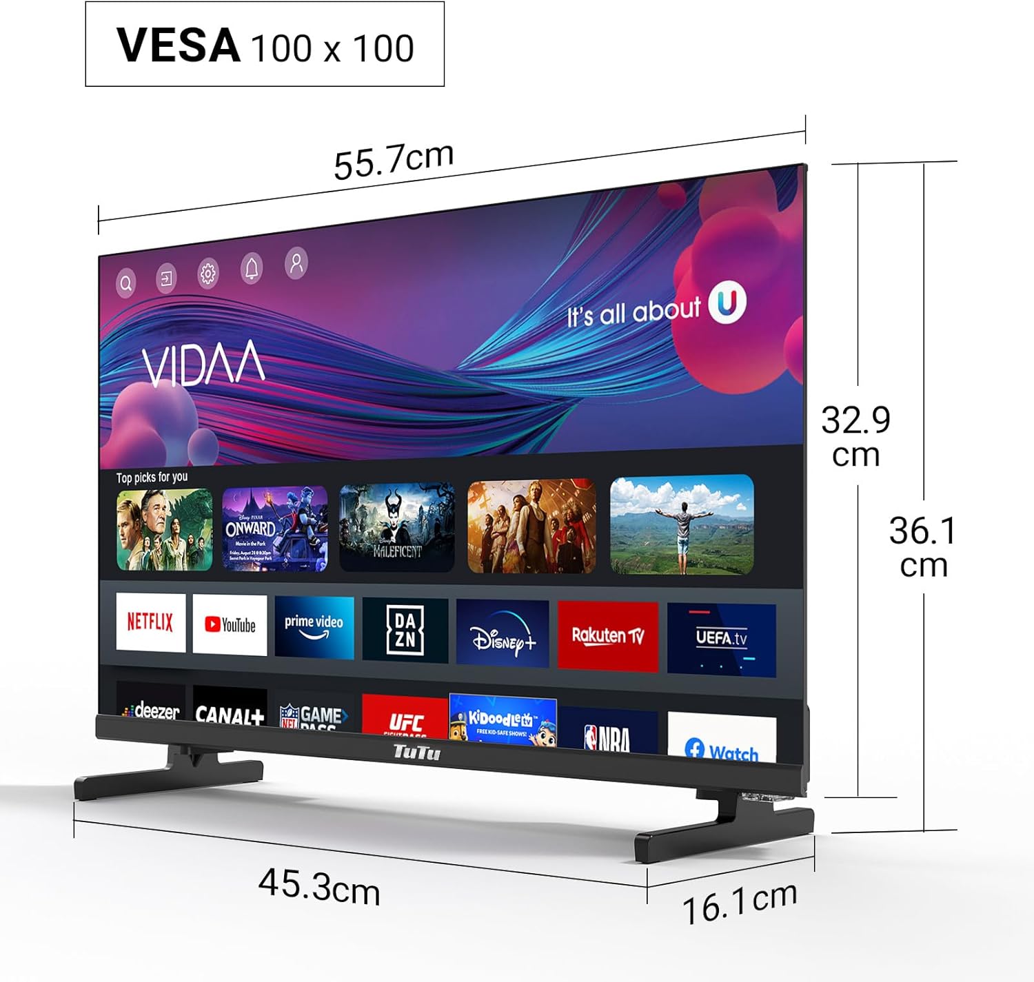 TuTu Smart TV 25 инча (64 см) Full HD VIDAA телевизор с Wi-Fi троен тунер (DVB-T/T2, DVB-C, DVB-S/S2) APP Store HDMI USB (TUV25FQ1B, 2024)