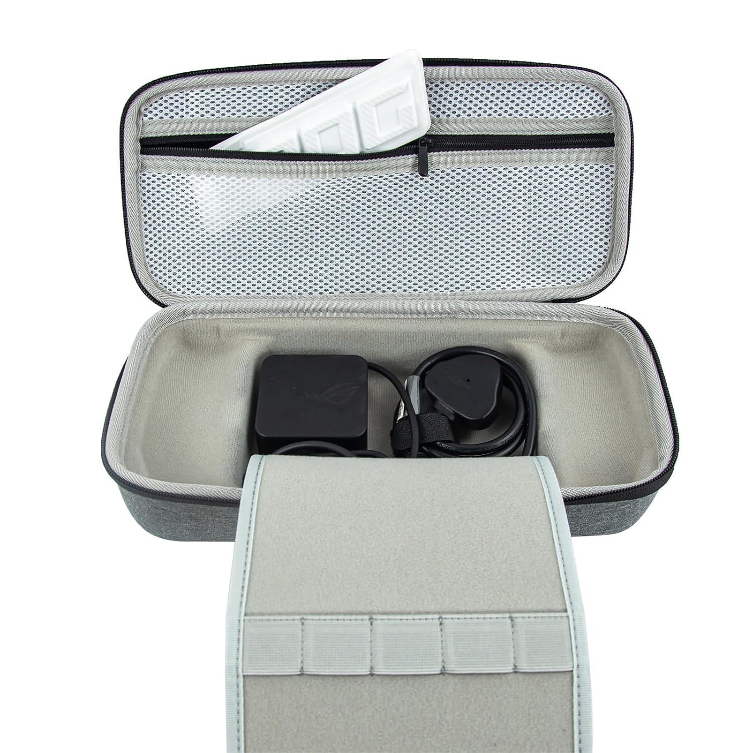 Интериорът е моделиран по формата на ROG Ally, всички аксесоари могат да се съхраняват подредено.