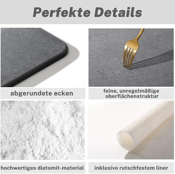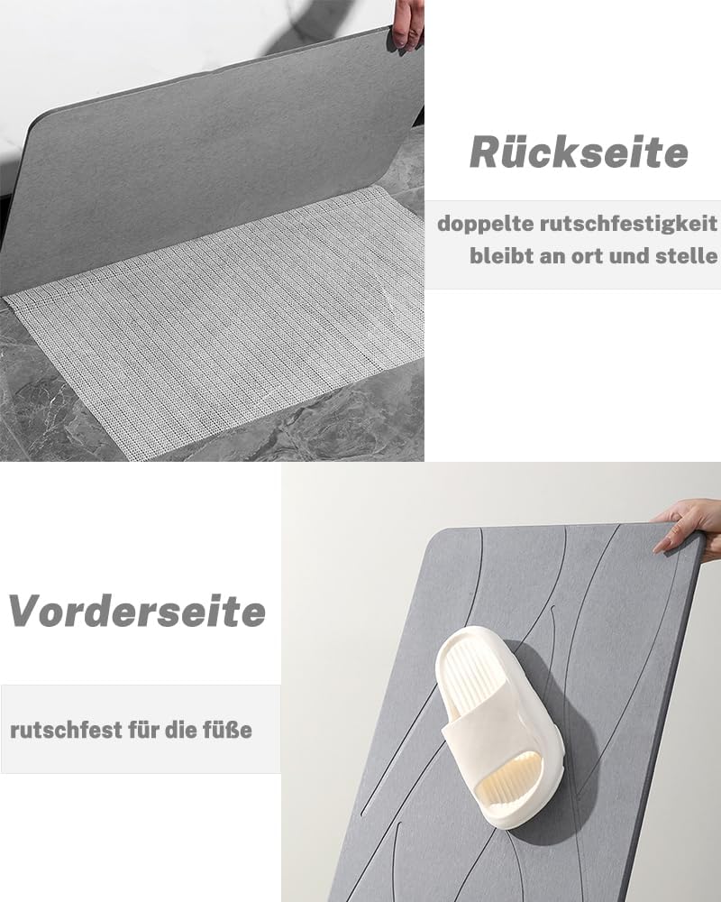 • Бързосъхнеща и абсорбираща: благодарение на отличната водопоглъщаща способност, подложката за баня от диатомит изсъхва бързо, остава хигиенична и предотвратява неприятното натрупване на влага.