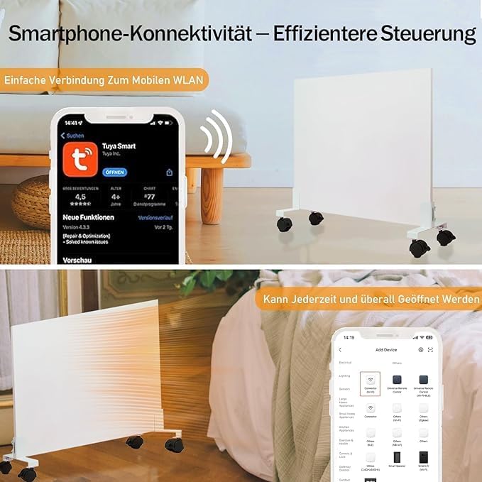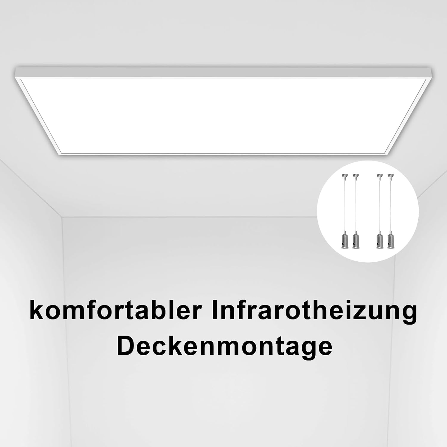• Лесен за монтаж: включва монтажен материал, 1,8 м кабел и висококачествен, прахово боядисан, ултратънък дизайн с дебелина 2 см, който не заема много място. Инфрачервен нагревател, подходящ за монтаж на стена и таван.
