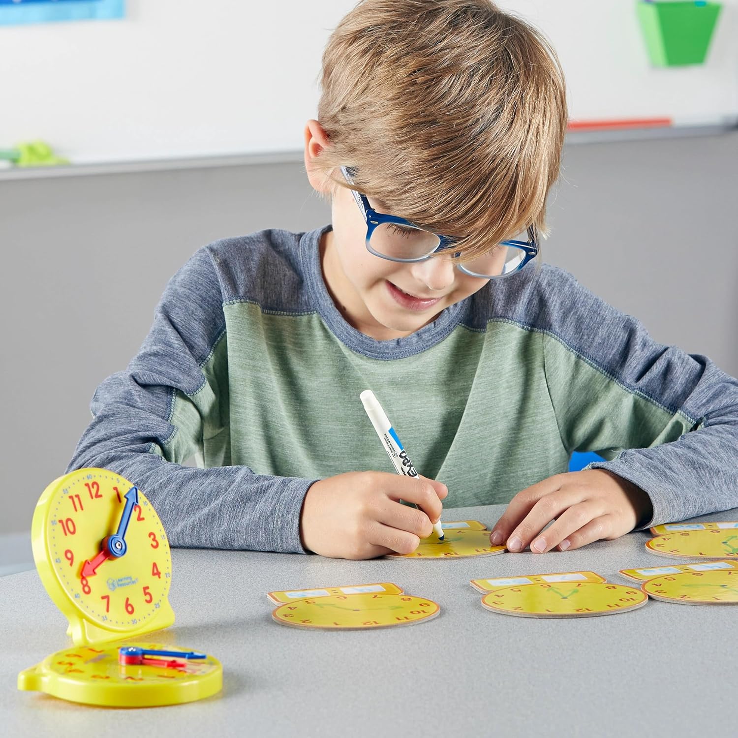 • Настройте времето на мини аналоговите часовници, изработени от пластмаса, или надпишете изтриваемите учебни часовници.
