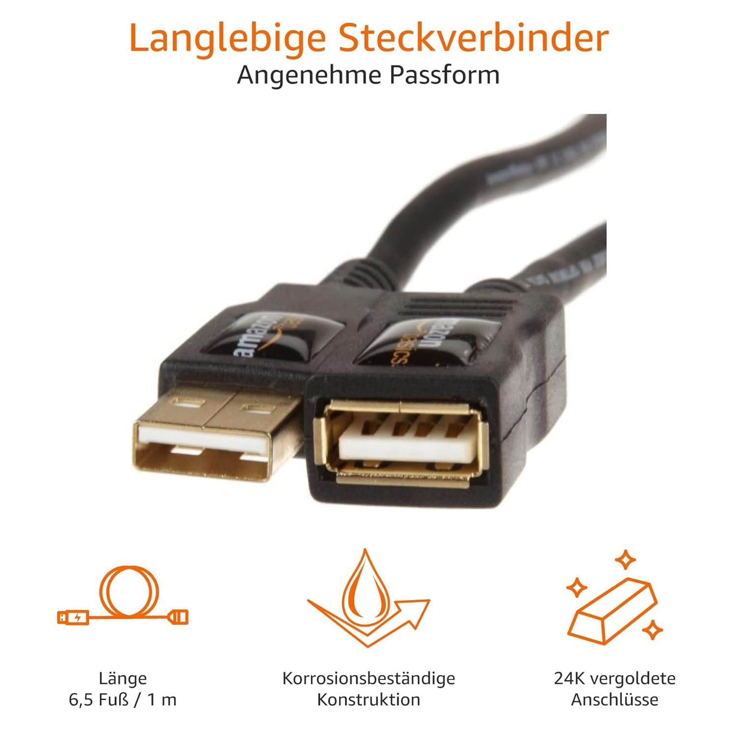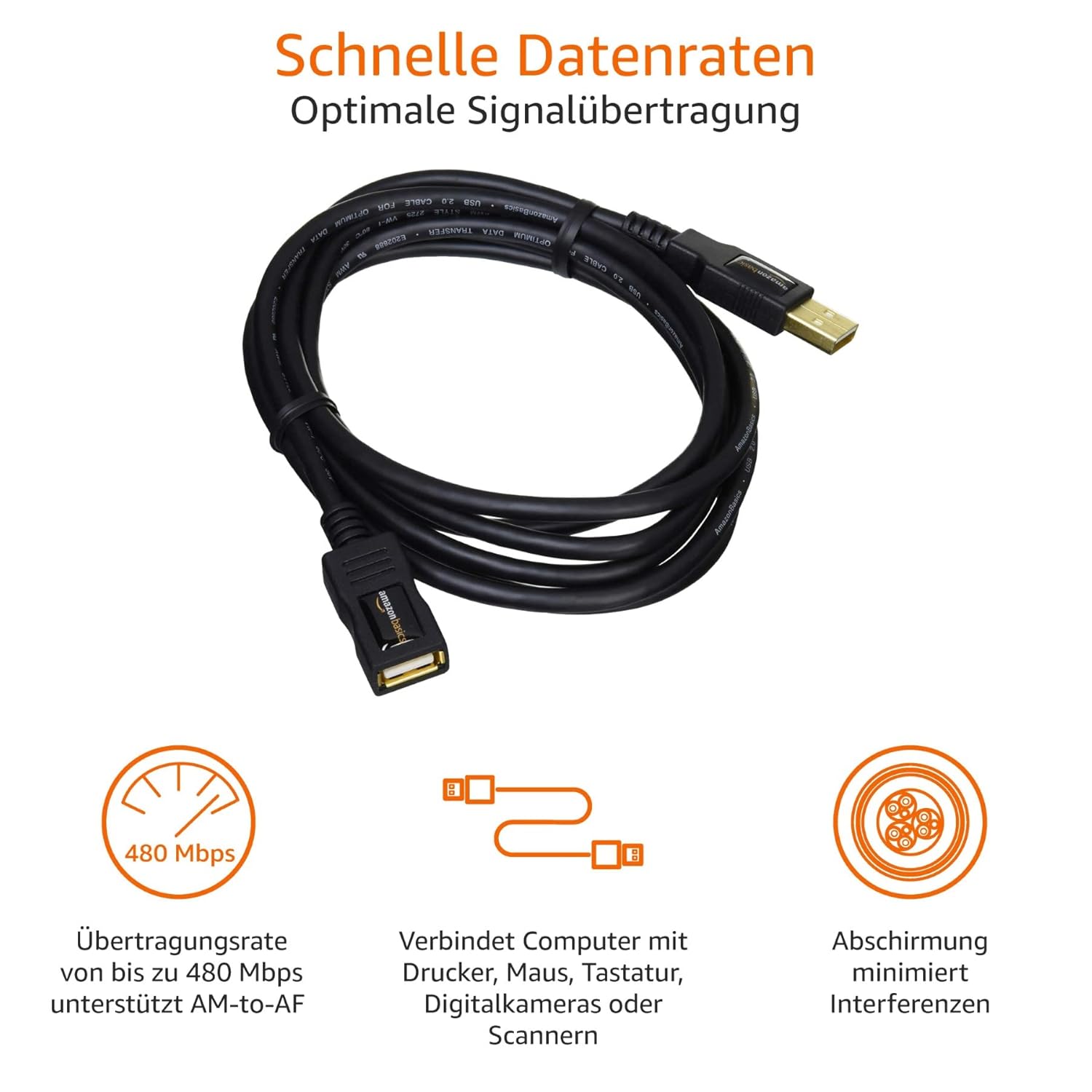 • 6,5-футов високоскоростен многоекраниран USB 2.0 удължителен кабел, мъжки към женски A