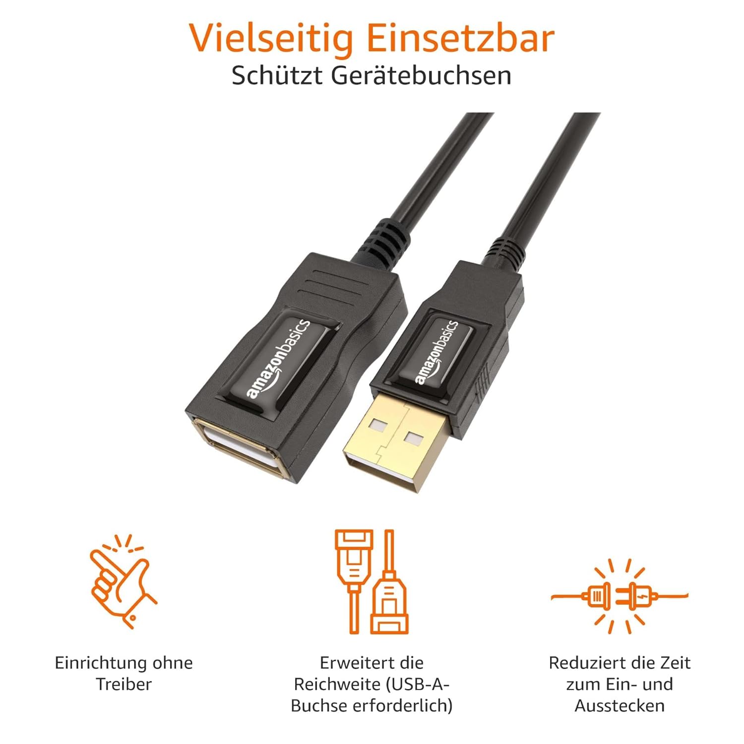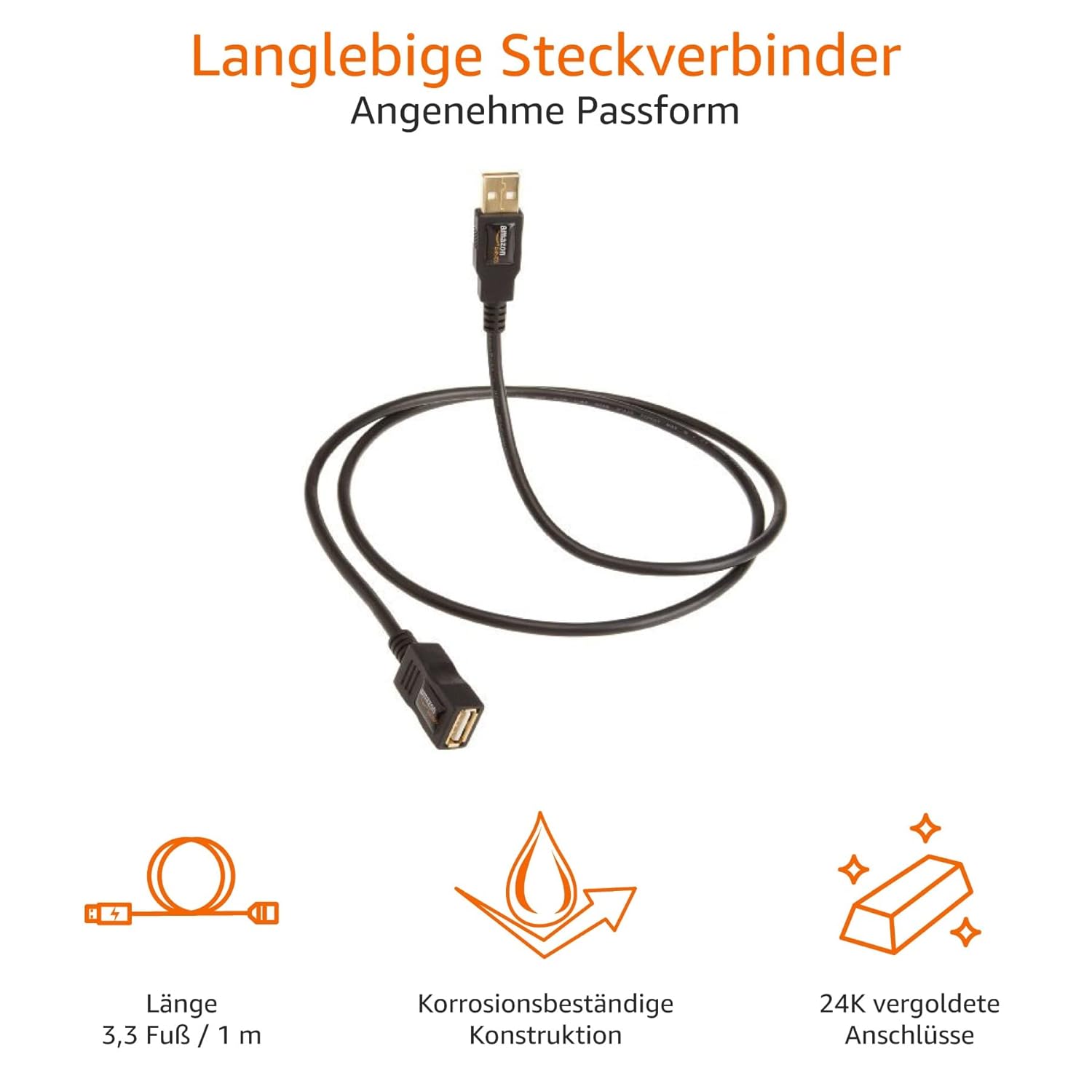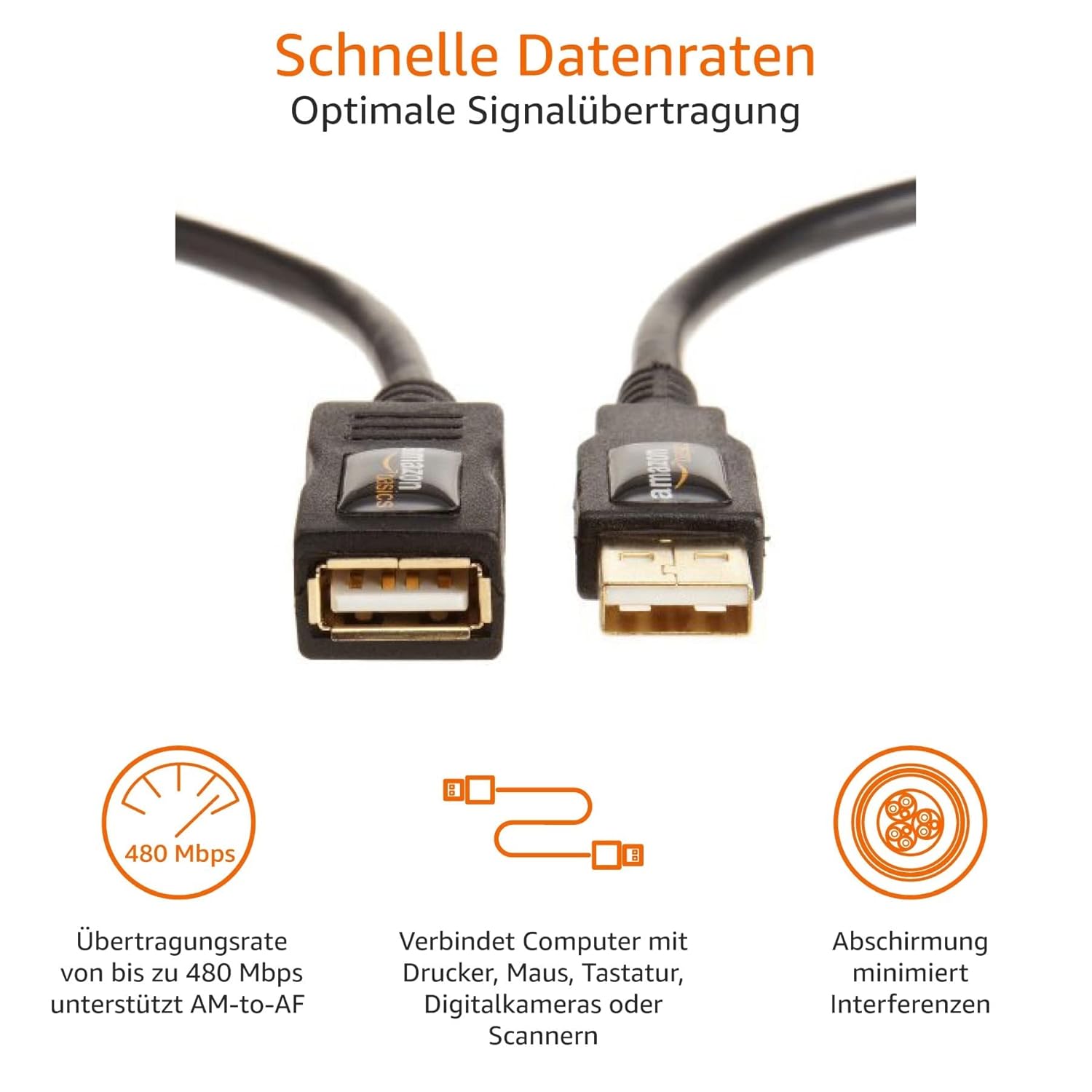 • 6,5-футов високоскоростен многоекраниран USB 2.0 удължителен кабел, мъжки към женски A