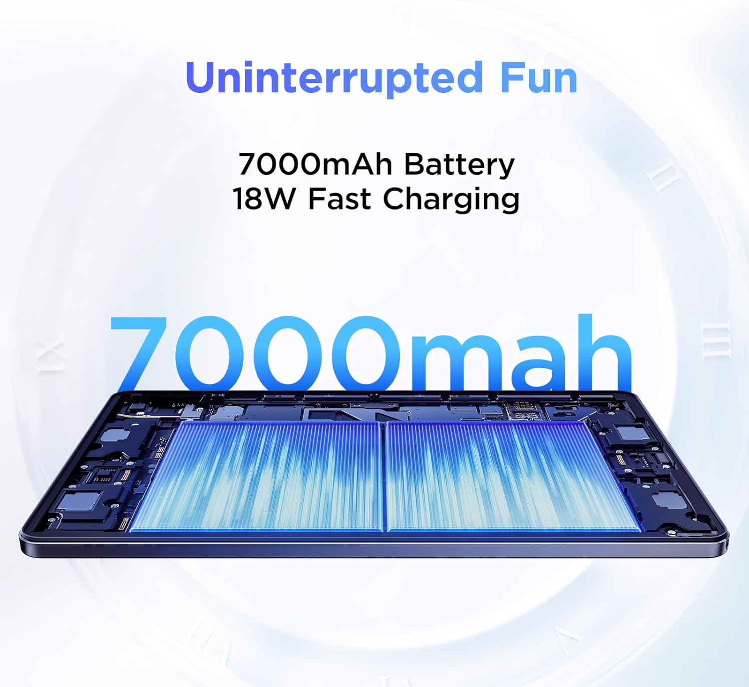 • Забавление през целия ден: батерия 7000 mAh + двойна камера 8MP/8MP: Онлайн стрийминг за 9,5 часа с пълно зареждане, увеличете максимално времето си за четене, сърфиране в интернет, гледане на видеоклипове и слушане на музика у дома и в движение. 8MP + 8MP камери отпред и отзад за селфита и ясни видео разговори.