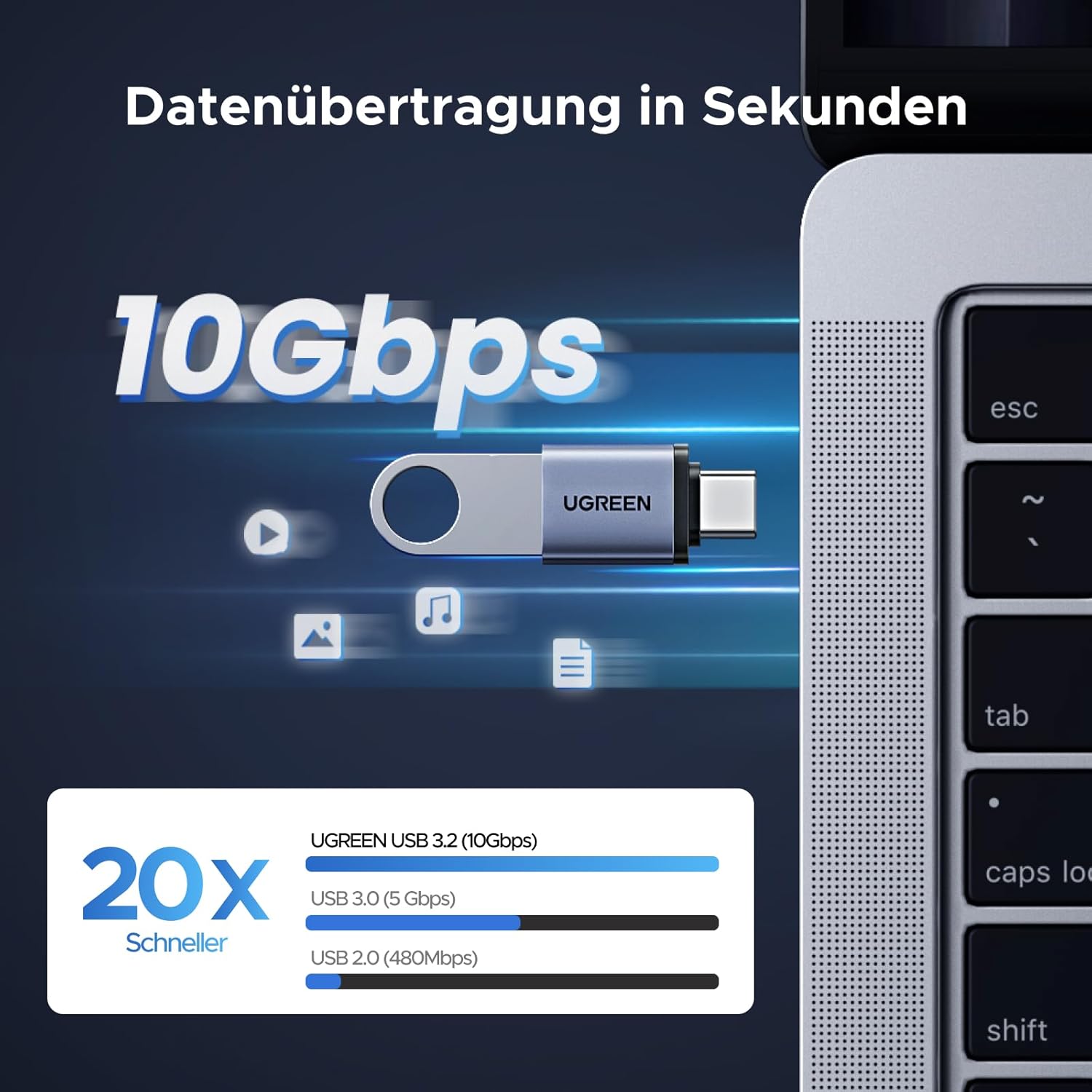 UGREEN адаптер USB C към USB (4 броя) 10Gbps OTG адаптер за мобилен телефон Thunderbolt 4/5, съвместим с iPhone 17/16 Series, MacBook Pro M4, Mac Mini, Galaxy S25 и др.