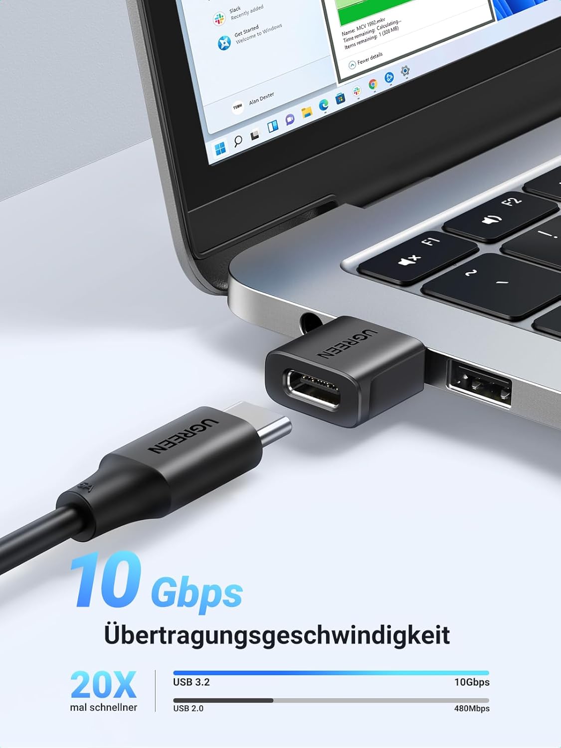 • 10Gbps висок трансфер на данни: едната страна на този USB C адаптер поддържа скорост на предаване до 10Gbps (1250MB/s), което е 20 пъти по-бързо от 480Mbps. Това означава, че можете да прехвърлите филм за секунди.