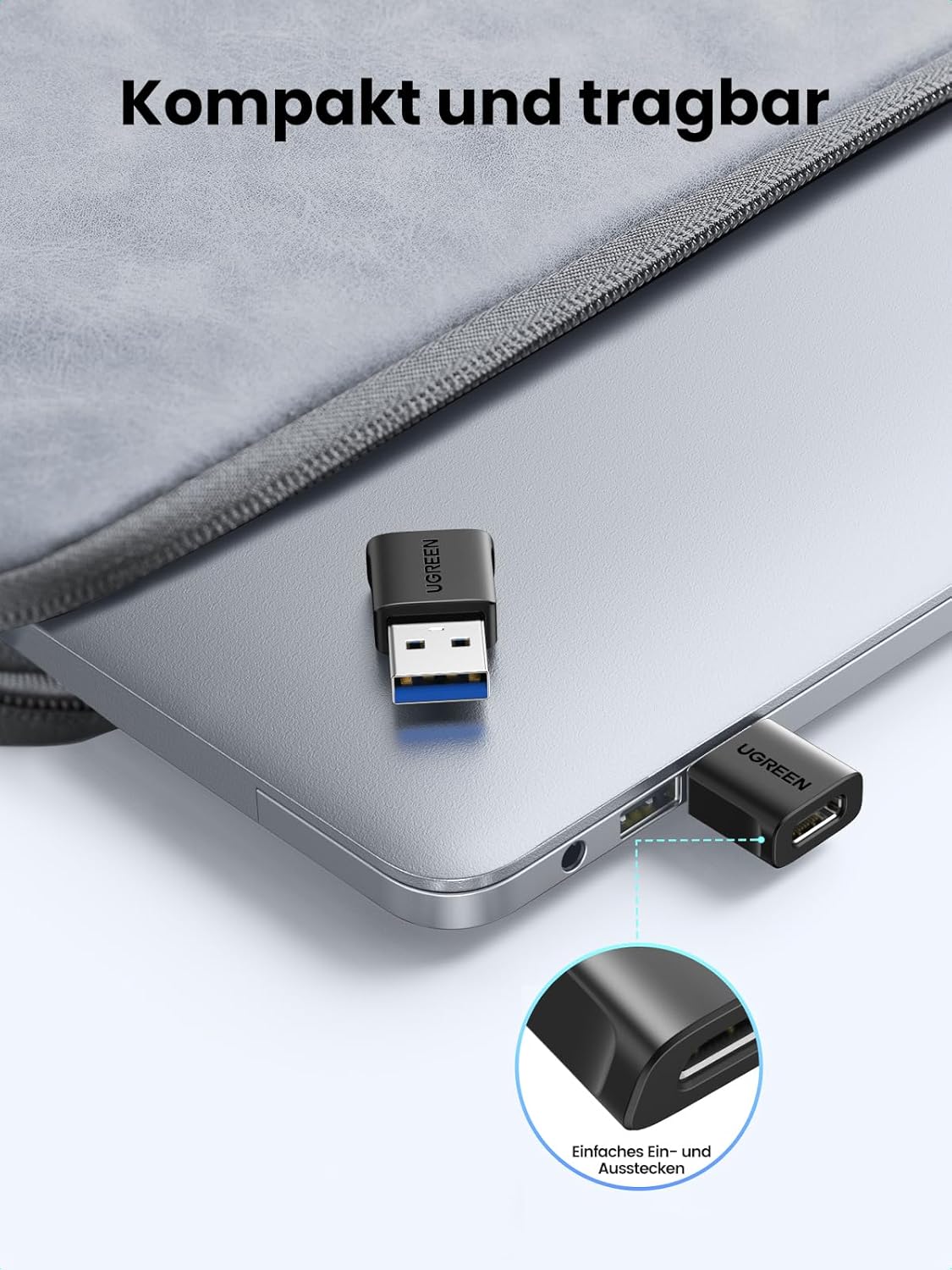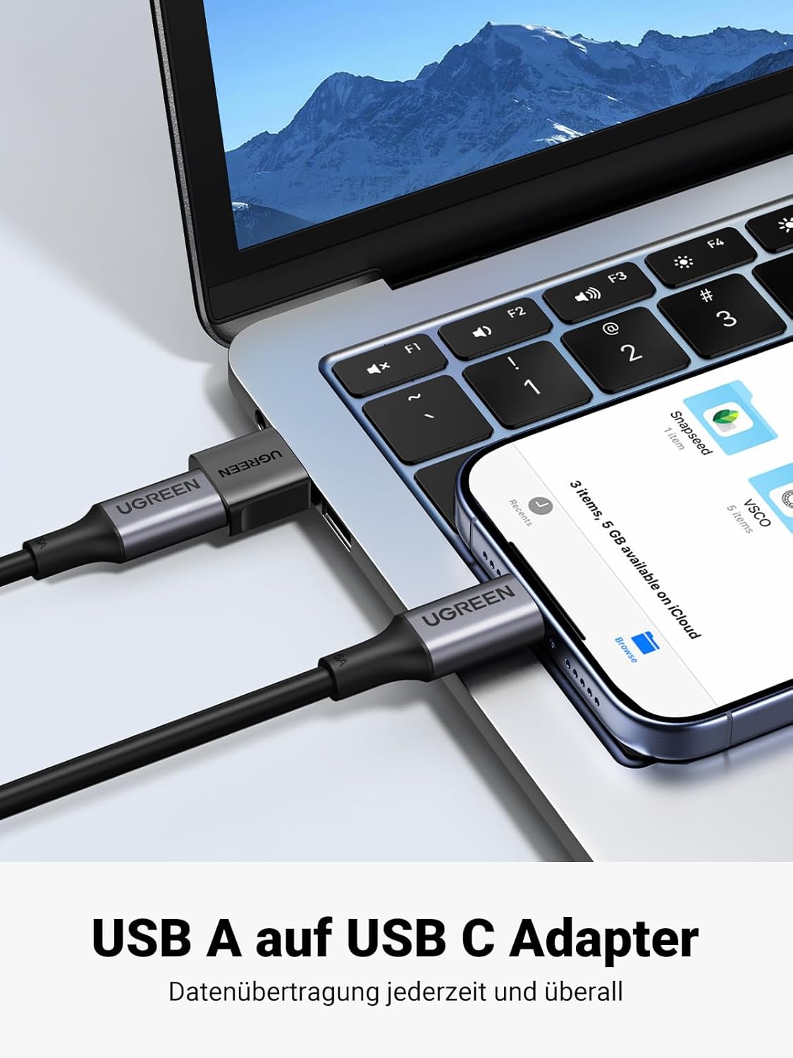 UGREEN USB C адаптер (пакет от 3), 10Gbps USB C женски към A мъжки адаптер, съвместим с iPhone 17/16/15 серия, iPad, Galaxy S24/S23 серия, лаптопи, Carplay и др.