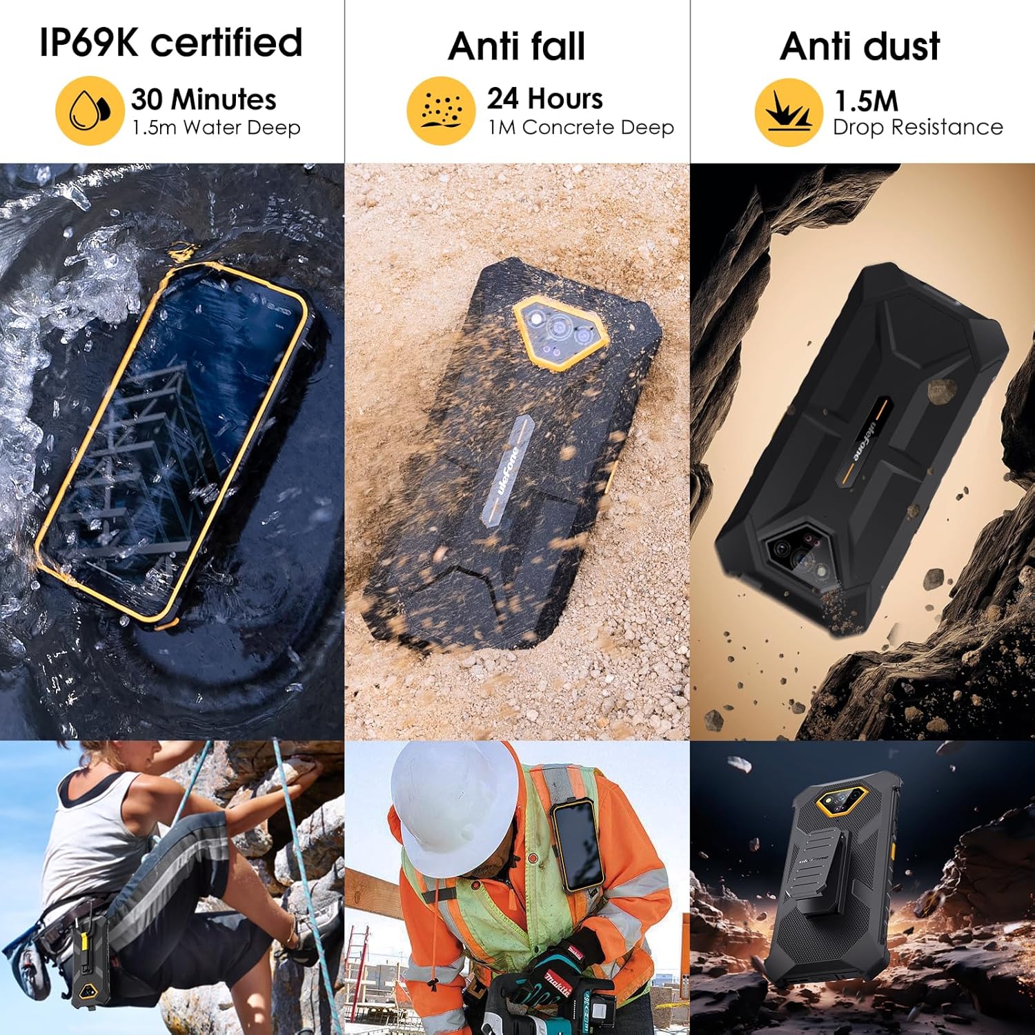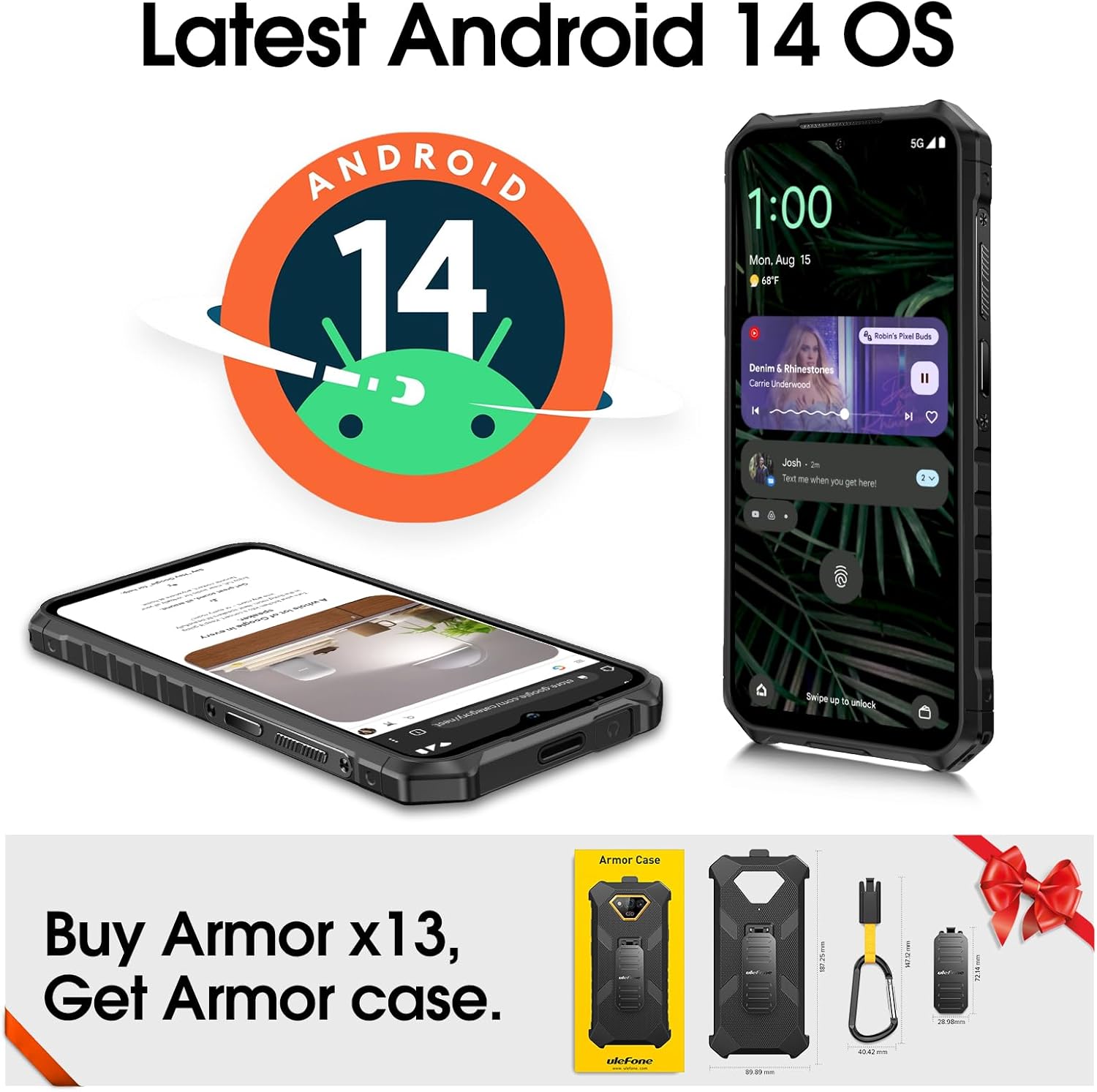 • 12 GB + 64 GB / 256 GB SD и най-новият Android 14: Ulefone Armor X13 е здрав мобилен телефон, оборудван с най-новата операционна система Android 14. Процесорът MediaTek Helio G36 Octa Core 2.2 GHz осигурява по-бърза обработка, по-малко забавяне и плавно гейминг изживяване. Разполага с до 12 GB RAM (6 GB RAM + 6 GB виртуална RAM) + 64 GB ROM, SD карта с капацитет до 256 GB, което прави изтеглянето и споделянето изключително лесно.