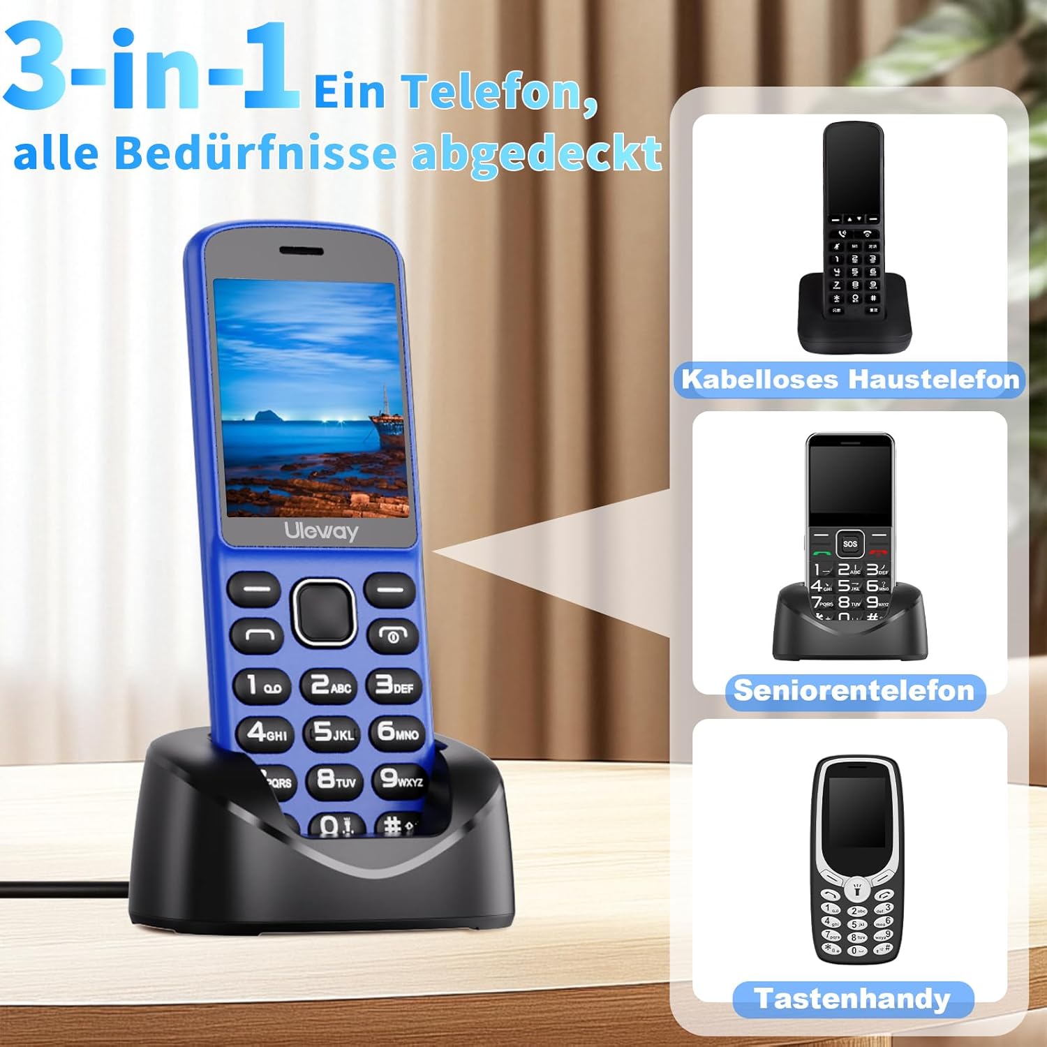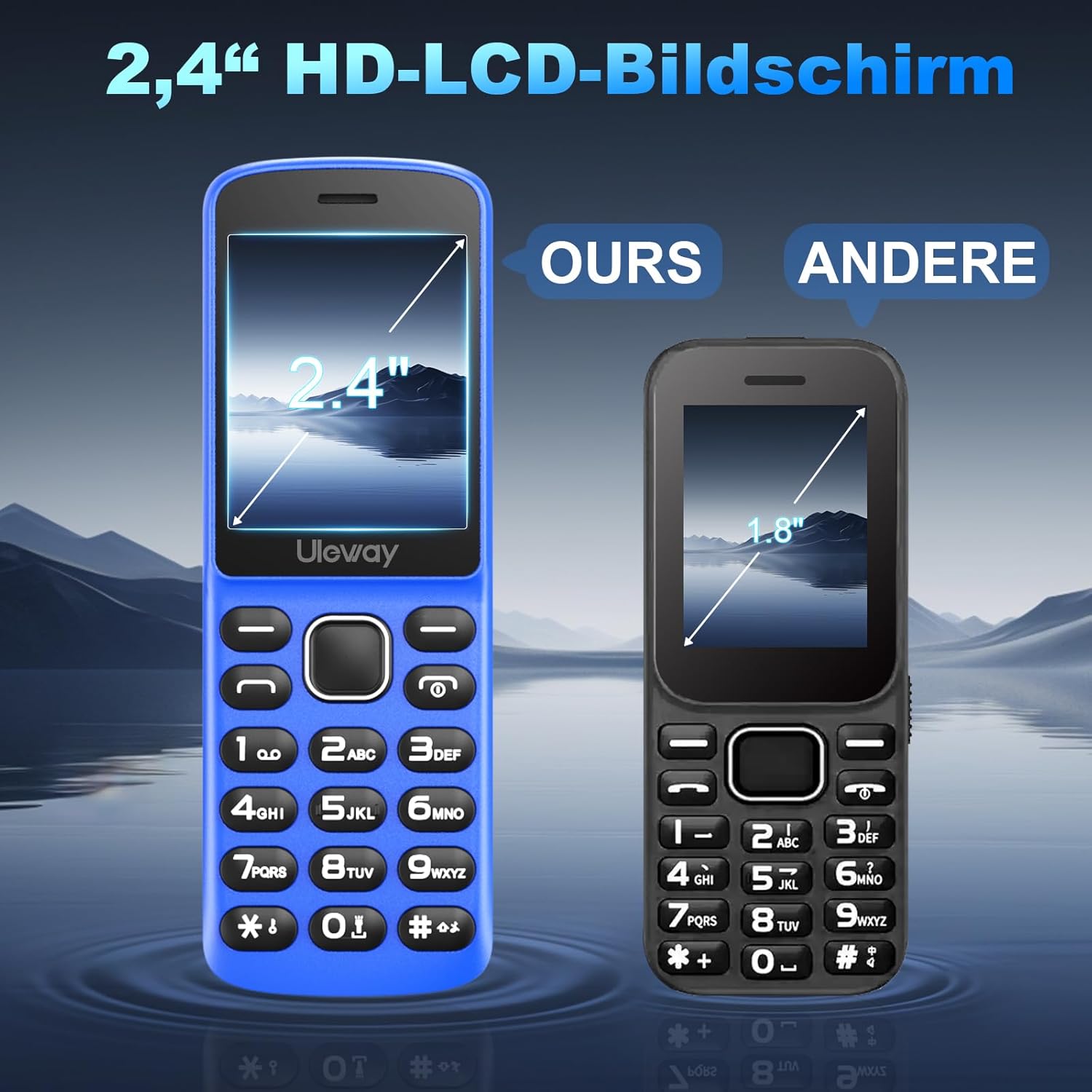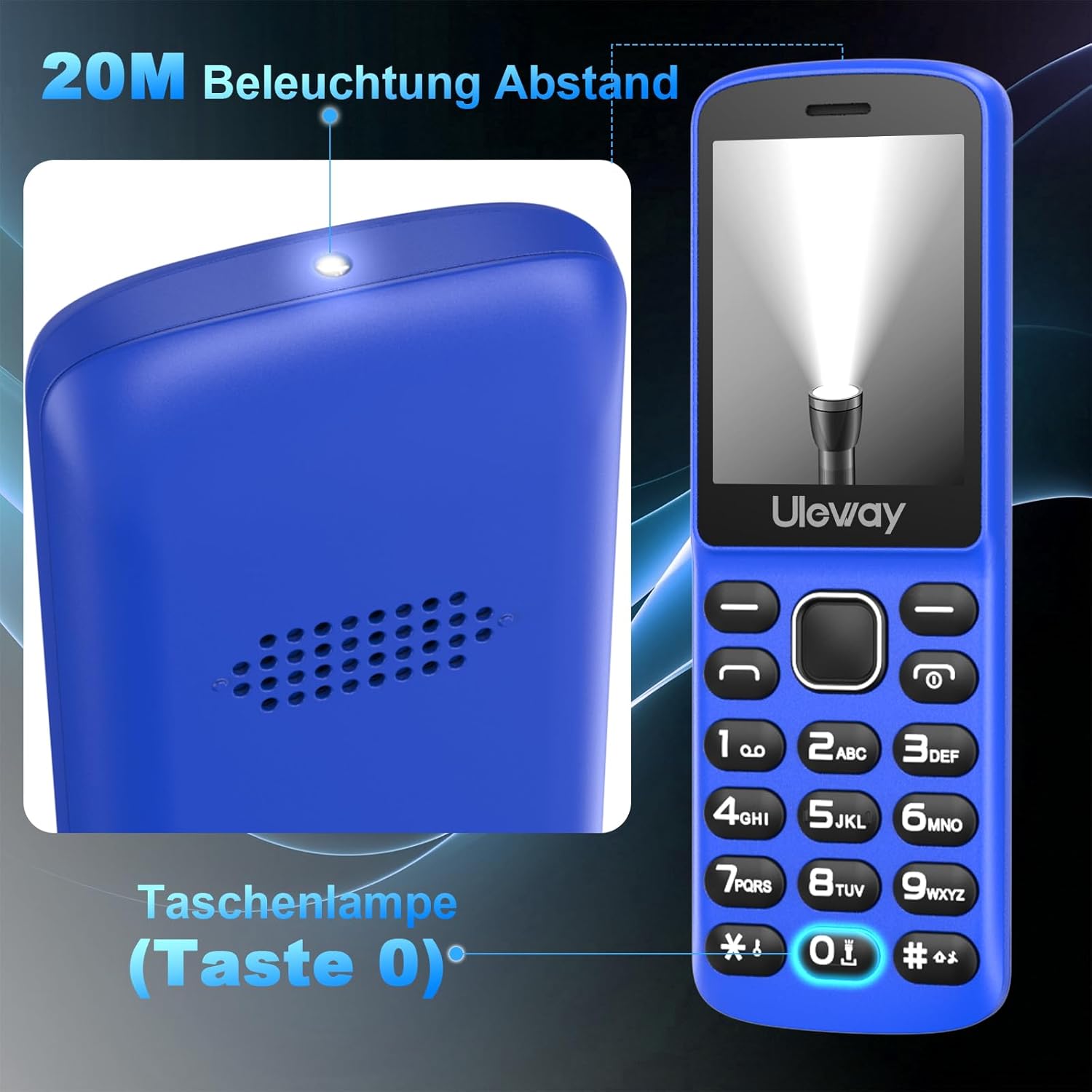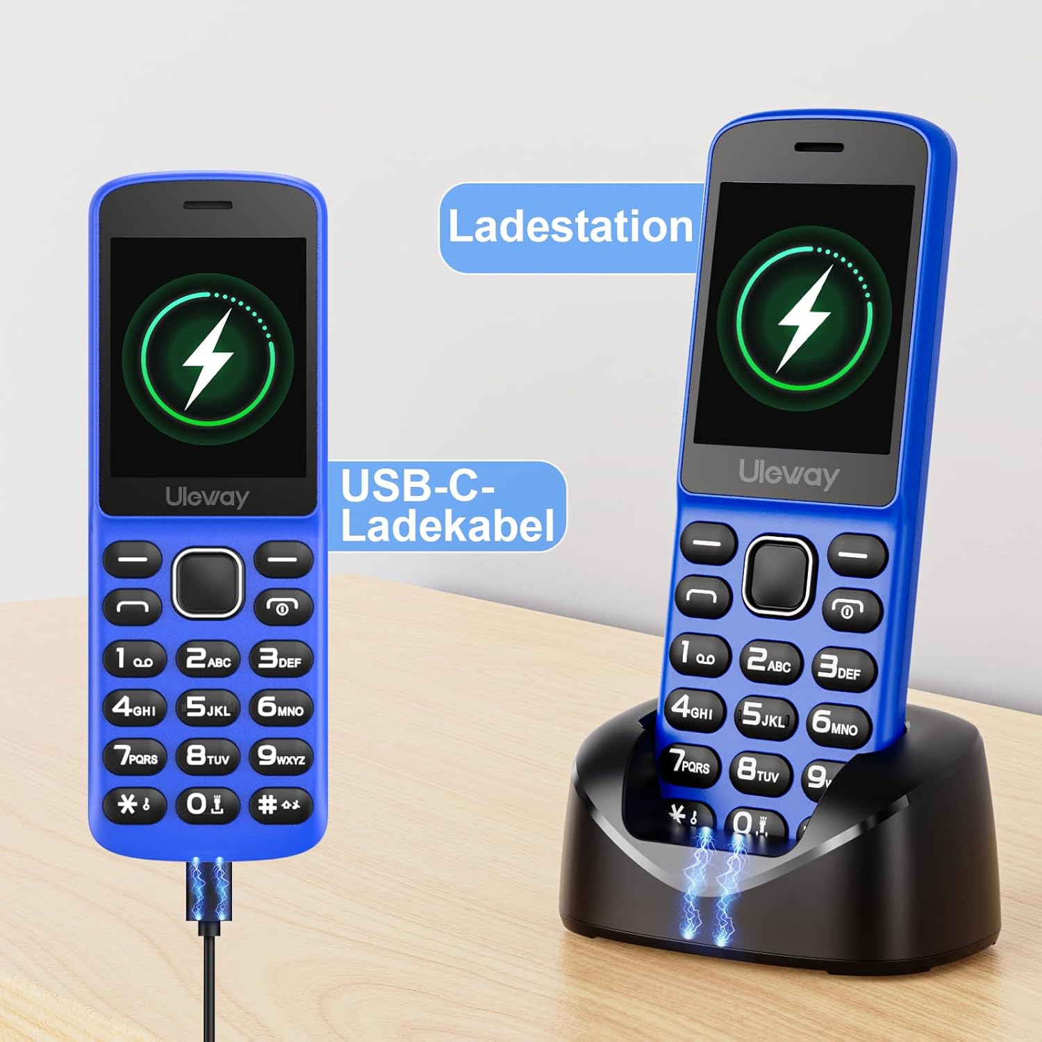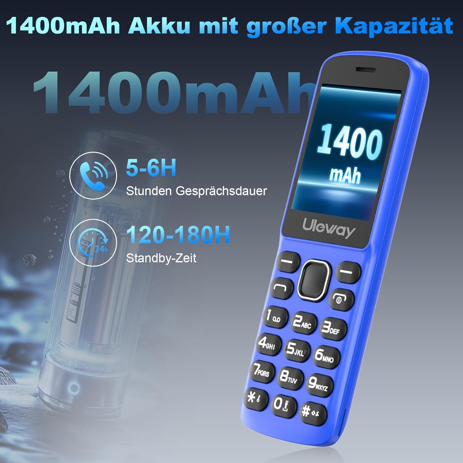 uleway 4G мобилен телефон за възрастни без договор, дълго време на готовност, 2.4-инчов голям екран, батерия 1400 mAh, мобилен телефон за възрастни с бутон и фенерче, USB-C зареждане