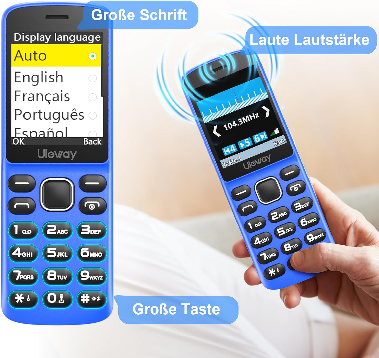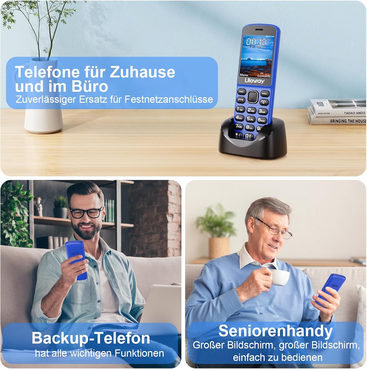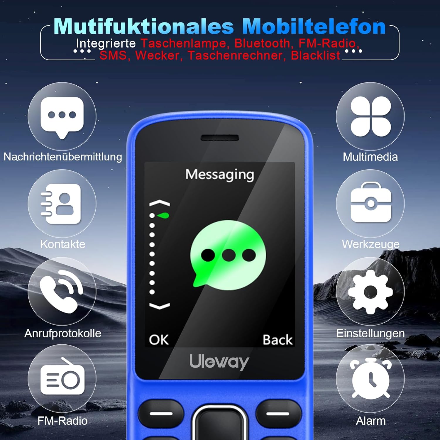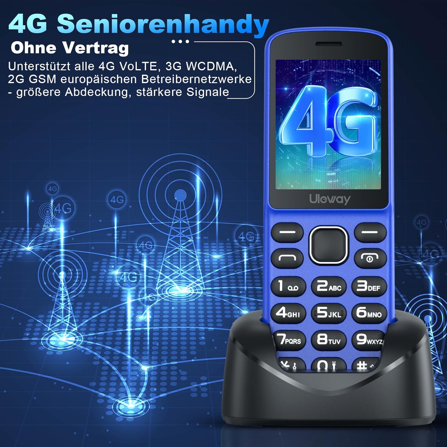• Мобилен телефон за възрастни без договор 4G: uleway T1208 е съвместим с всички европейски 2G/3G/4G мрежи (напр. O2, EE, Vodafone, Orange, Three, ID Mobile, Smarty) и използва nano SIM карта. Без месечни такси - просто изберете подходящия план от предпочитания от вас доставчик.