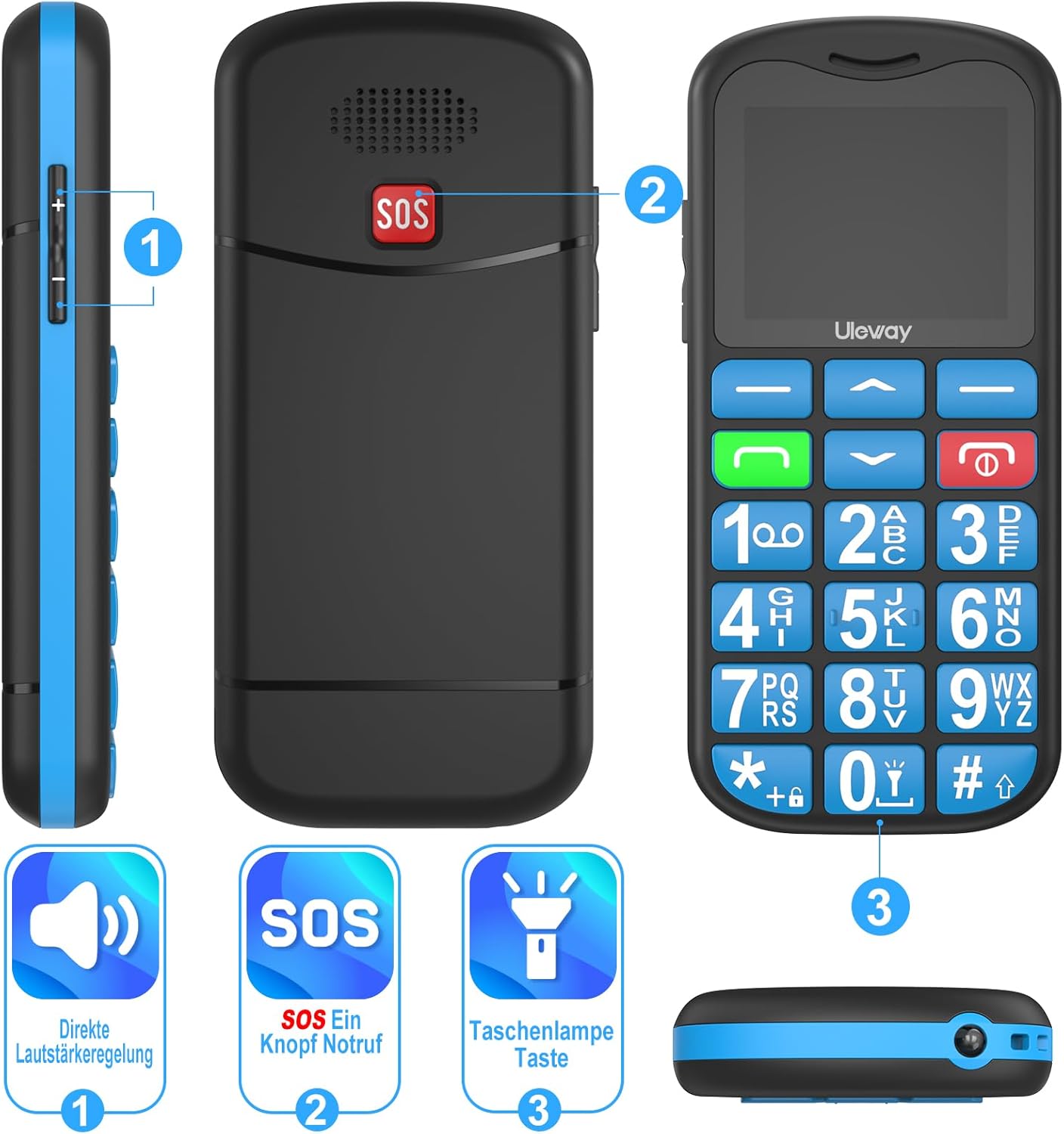Висок глас | Добро качество на звука | Големи бутони | Батерия 1000 mAh