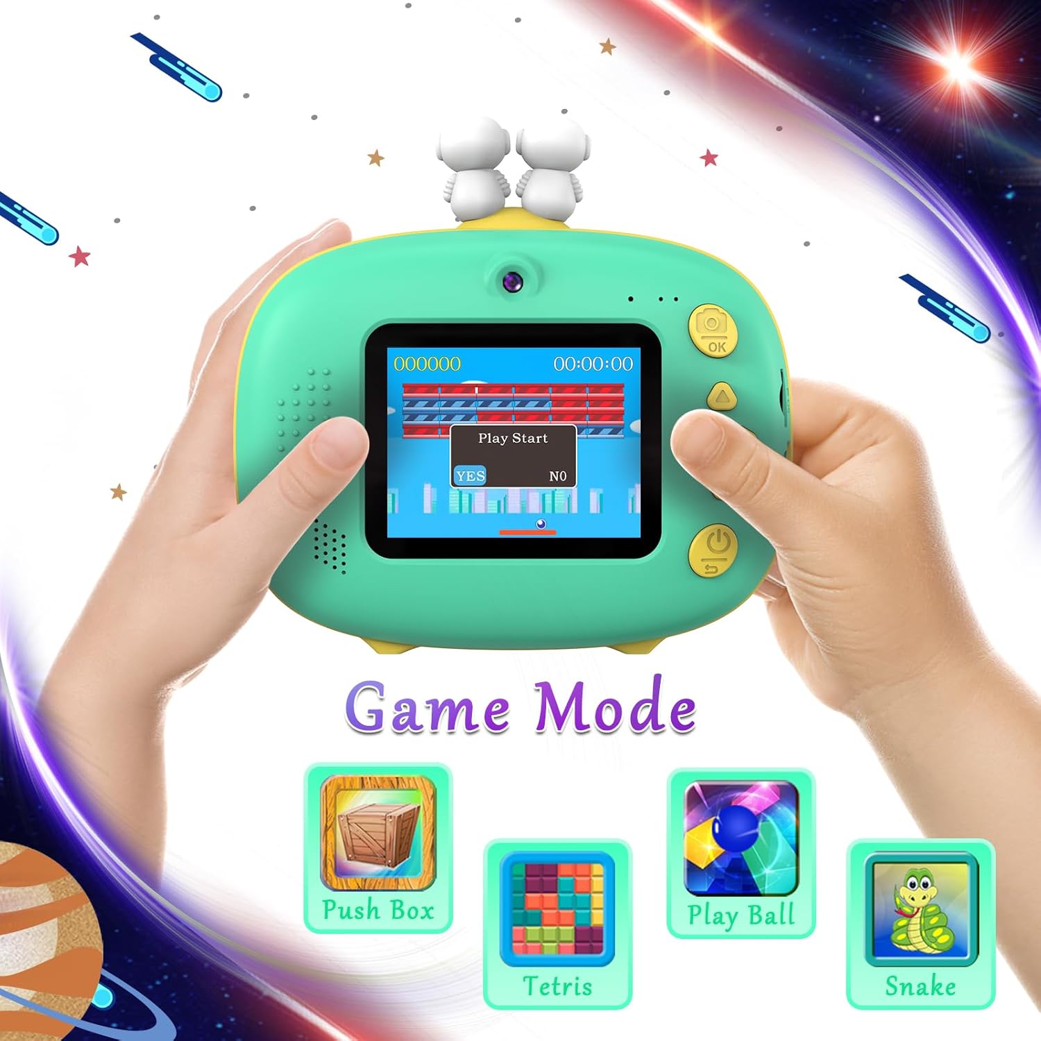 • Детски дигитален фотоапарат 2023: Включени са 32 GB SD карта и четец на карти. Детският фотоапарат поддържа видеозапис, възпроизвеждане, самоснимачка, записи с ускорен кадър и 10x цифрово увеличение, 30 забавни фоторамки, 6 цветни филтъра и 5 огледални ефекта, така че децата могат да имат различни преживявания, когато снимат. 4 пъзел игри (Змия, Тетрис и Сокобан) са идеални за развитие на интелигентността на децата.