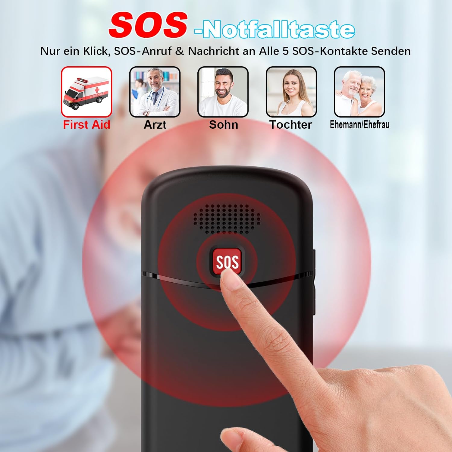 SOS функция: мобилният телефон за възрастни хора съдържа SOS бутон, който ви позволява бързо да изпращате помощна информация и автоматично да се обаждате на 5 контакта за спешни случаи, за да осъществите кръгово повикване.