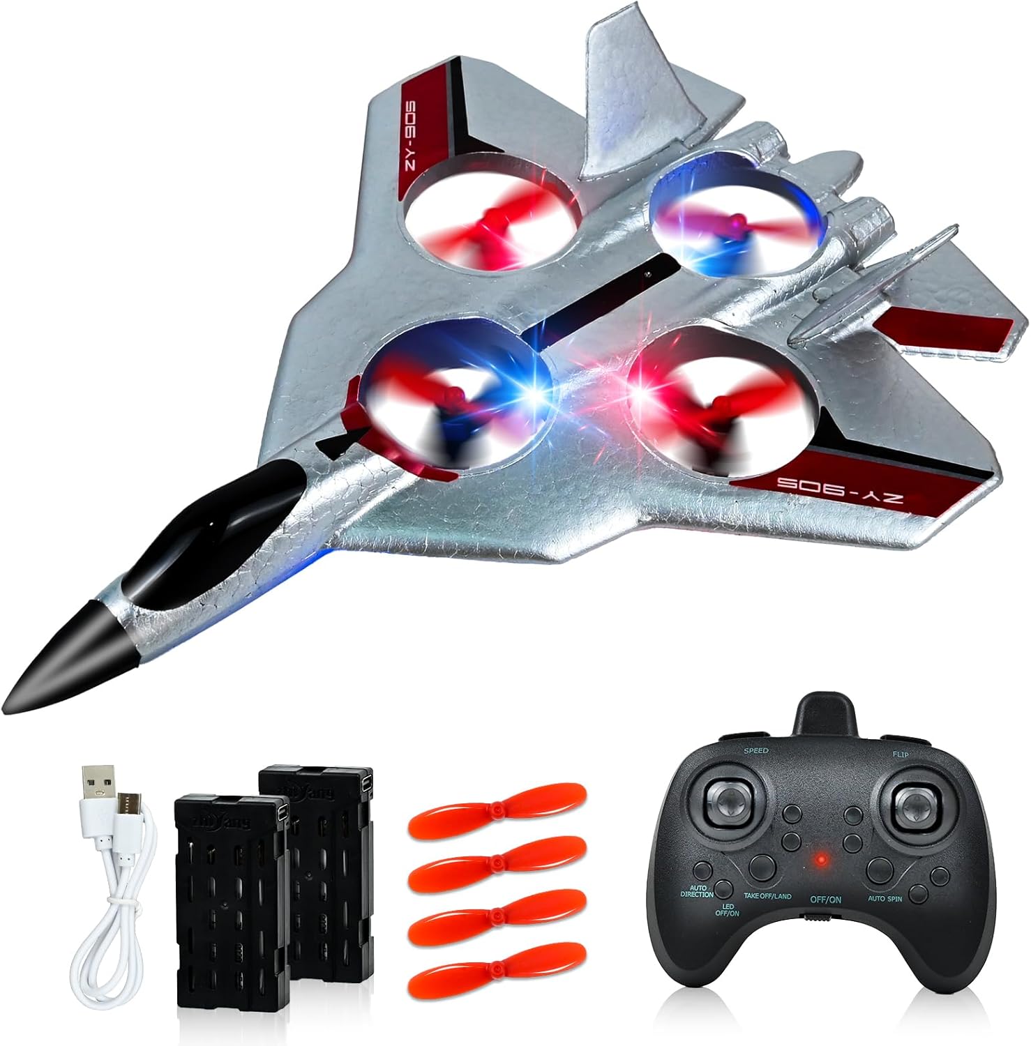 Ulikey RC самолет за деца, 2.4 GHz дистанционно управляван самолет, USB зареждане, модел самолет с 4-осен жироскопичен стабилизатор, LED нощна светлина и 4 резервни витла, подарък за деца и...
