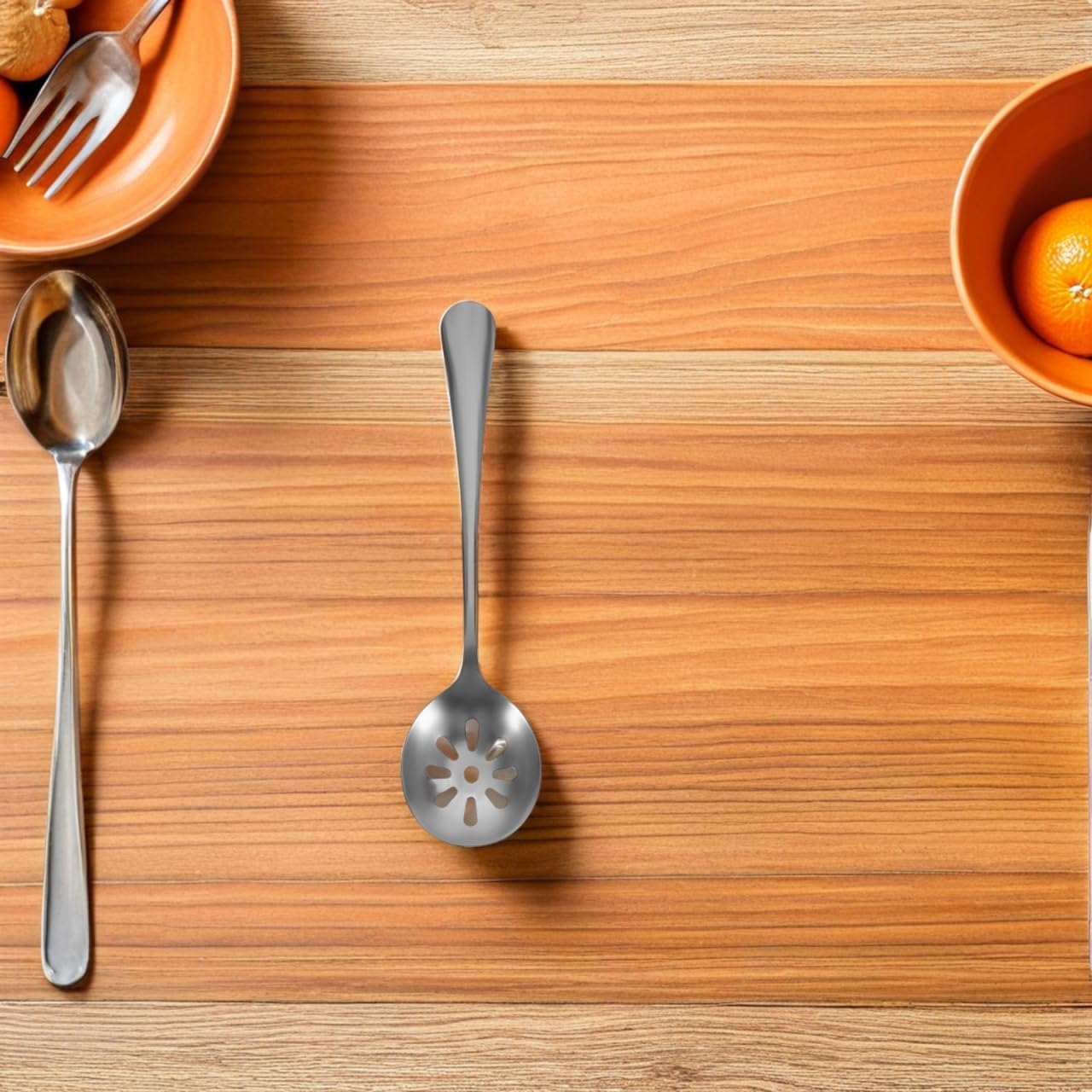 Ключова функция на лъжицата за сервиране: Лъжицата за сервиране Ultechnovo от неръждаема стомана с прорези позволява лесно и чисто сервиране на плодове, десерти и малки ястия, идеална за ежедневна употреба в кухнята и на събития.