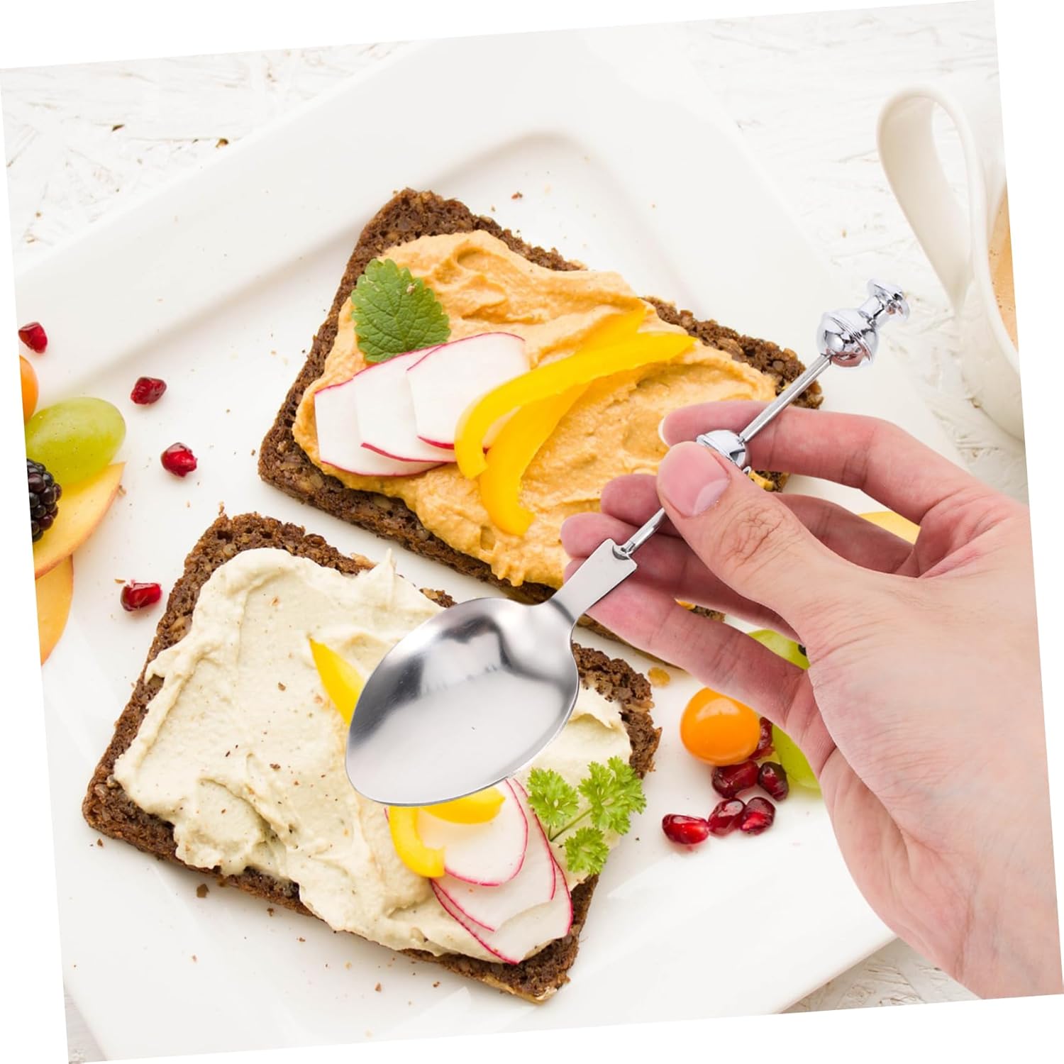 -Тази лъжица от неръждаема стомана е задължителна за всеки, който цени стила в кухнята си. Чаена лъжичка с дръжка.