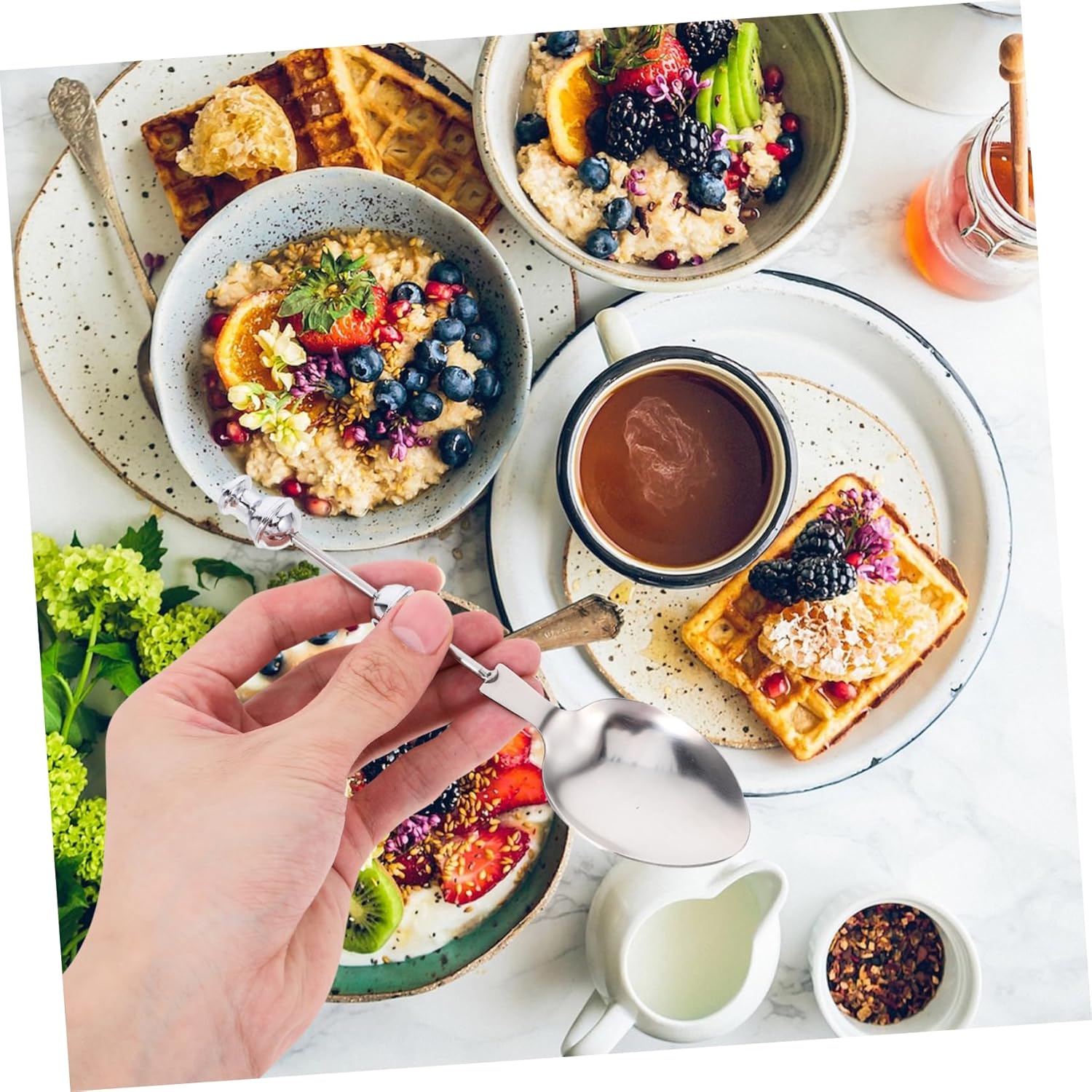 -С многофункционалния си дизайн, тази лъжица е универсален инструмент, който може да се използва за различни задачи в кухнята, лъжица за десерт.