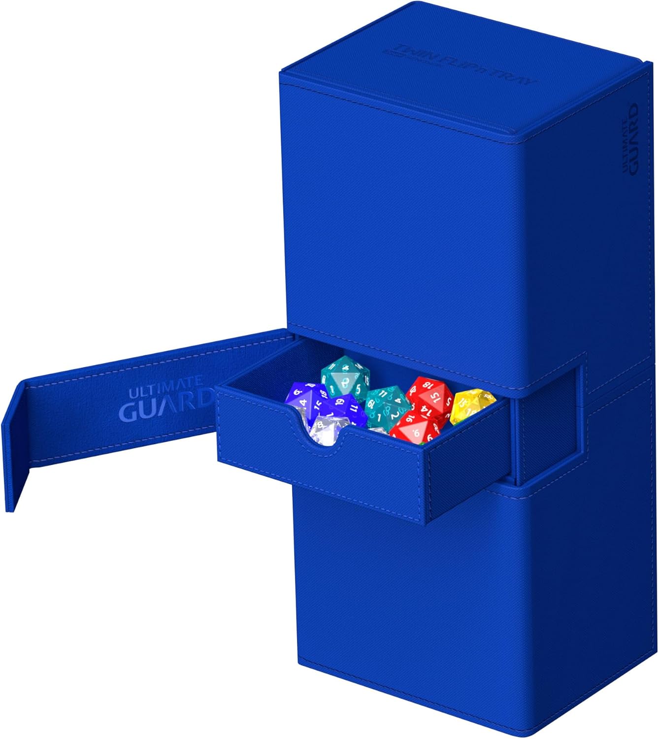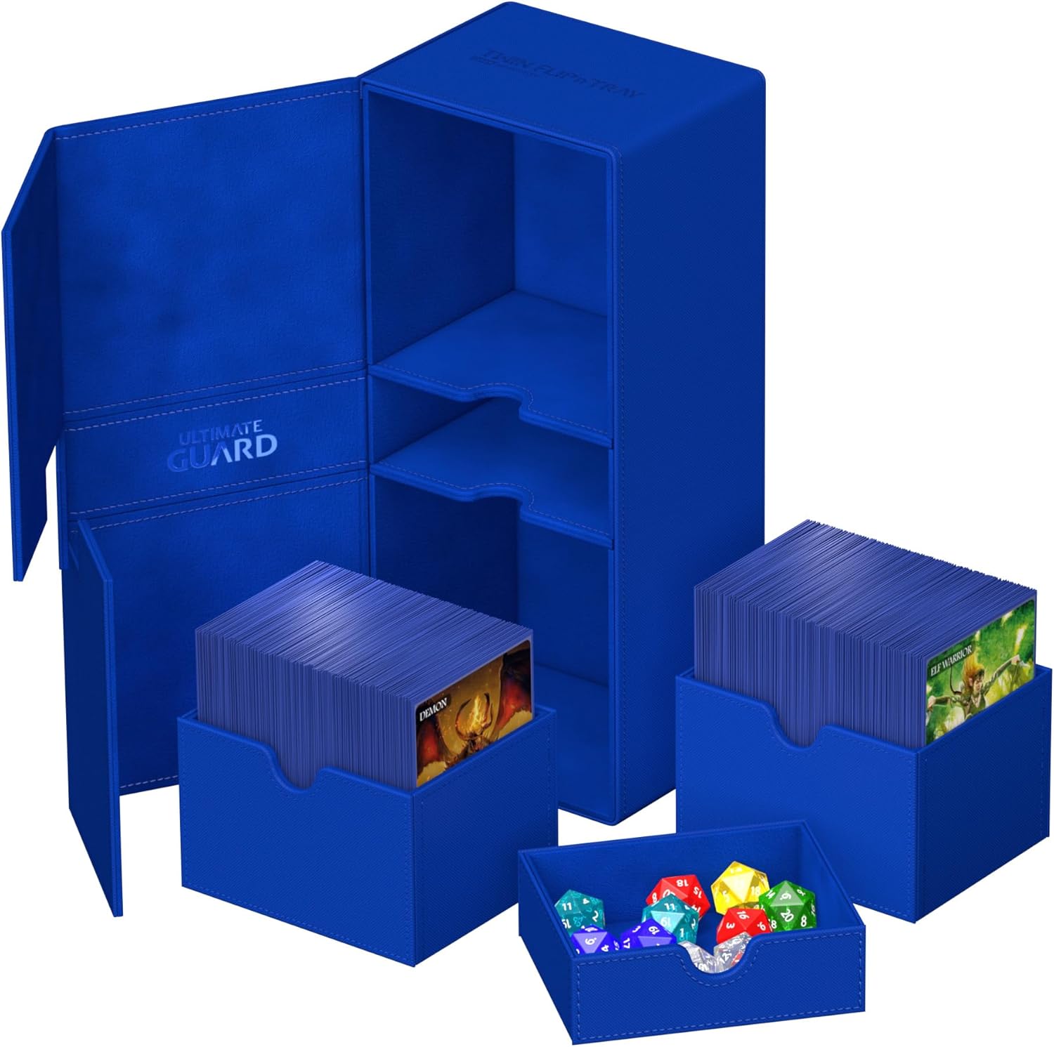 Двойно място за големи тестета! Изпитаният Twin Flip'n'Tray – сега в нов размер! Ексклузивният Twin Flip'n'Tray 266+ за 2022 г. е специално проектиран за тестета Commander / EDH ** и предлага място за всички видове тестета, с двоен или единичен ръкав, както и за вашите жетони и други допълнителни карти. Двоен дом за големи тестета карти: Twin Flip'n'Tray 266+. Характеристики: - Проектиран за до 266 (с двоен ръкав) или 315+ (с единичен ръкав) карти със стандартен размер в Ultimate Guard Sleeves* - Модулен дизайн за комбиниране с продукти на Ultimate Guard - Подвижни отделения за карти и аксесоари - Независим достъп до всяко отделение - Издръжлив материал Xenoskin - Обикновен дизайн с висококачествена микрофибърна вътрешност - Силно магнитно закопчаване Приблизителни размери: 114 x 90 x 250 мм * Проектиран за Ultimate Guard ръкави. Ръководствата за карти от други производители могат да повлияят на капацитета и/или съвместимостта. **Magic: The Gathering™ и „Magic: The Gathering Commander™“ са регистрирани търговски марки на Wizards of the Coast, Inc.