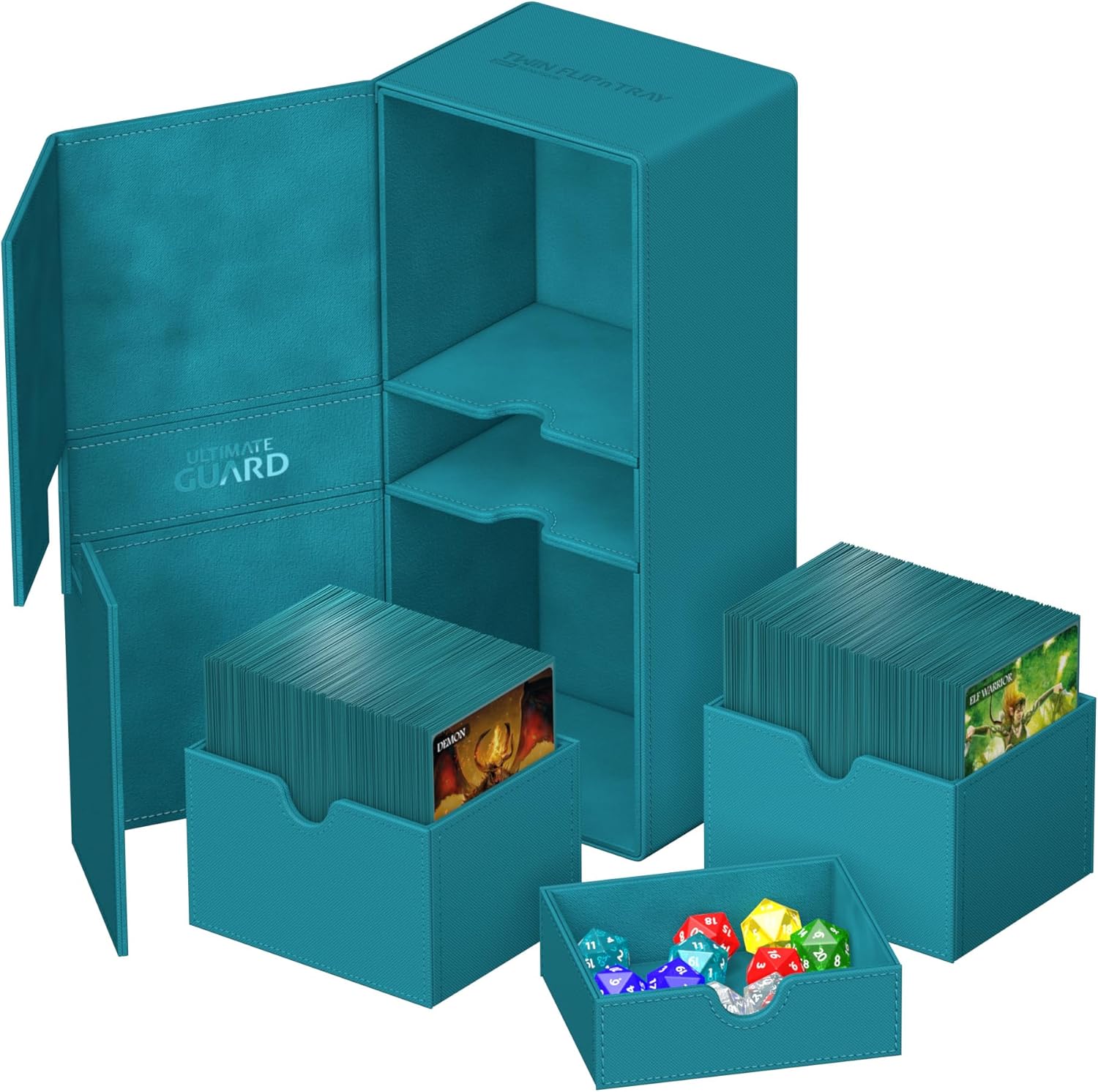 Двойно място за големи тестета! Изпитаният Twin Flip'n'Tray – сега в нов размер! Ексклузивният Twin Flip'n'Tray 266+ за 2022 г. е специално проектиран за тестета Commander / EDH ** и предлага място за всички видове тестета, с двоен или единичен ръкав, както и за вашите жетони и други допълнителни карти. Двоен дом за големи тестета карти: Twin Flip'n'Tray 266+. Характеристики: - Проектиран за до 266 (с двоен ръкав) или 315+ (с единичен ръкав) карти със стандартен размер в Ultimate Guard Sleeves* - Модулен дизайн за комбиниране с продукти на Ultimate Guard - Подвижни отделения за карти и аксесоари - Независим достъп до всяко отделение - Издръжлив материал Xenoskin - Обикновен дизайн с висококачествена микрофибърна вътрешност - Силно магнитно закопчаване Приблизителни размери: 114 x 90 x 250 мм * Проектиран за Ultimate Guard ръкави. Ръководствата за карти от други производители могат да повлияят на капацитета и/или съвместимостта. **Magic: The Gathering™ и „Magic: The Gathering Commander™“ са регистрирани търговски марки на Wizards of the Coast, Inc.