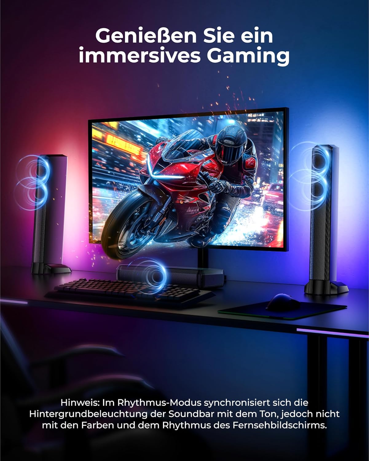 • Мощен 2.2-канален звук за по-богат бас и по-ясни високи честоти - Оборудван с два вградени високочестотни и нискочестотни високоговорителя, този 2.2-канален саундбар за телевизори произвежда балансиран звук за по-богат бас и по-ясни високи честоти. Освен това има допълнителен интерфейс за субуфери, който ви позволява да свържете свой собствен субуфер (субуферът не е включен).