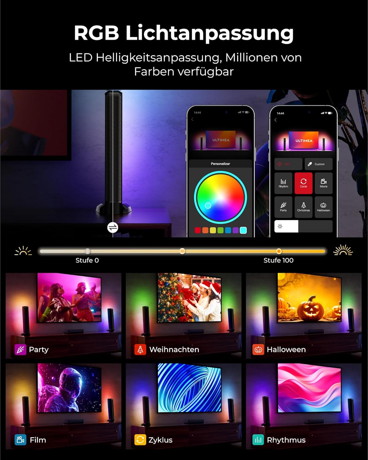 ULTIMEA 7.1-канален виртуален съраунд саундбар, саундбар за телевизори с 2 съраунд високоговорителя, система за съраунд звук за телевизори с RGB осветление, 6.5-инчов субуфер, приложение, HDMI/опция/AUX/BT, Apollo S70 Ultra