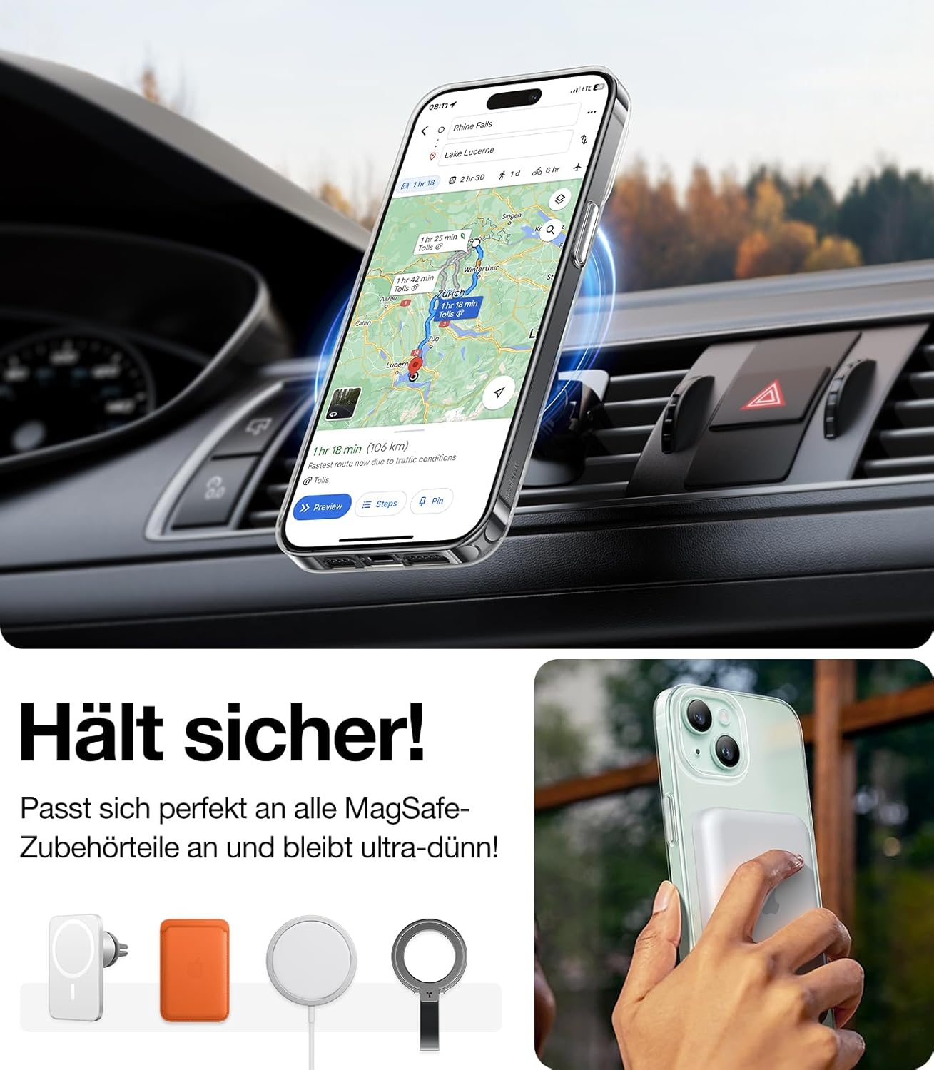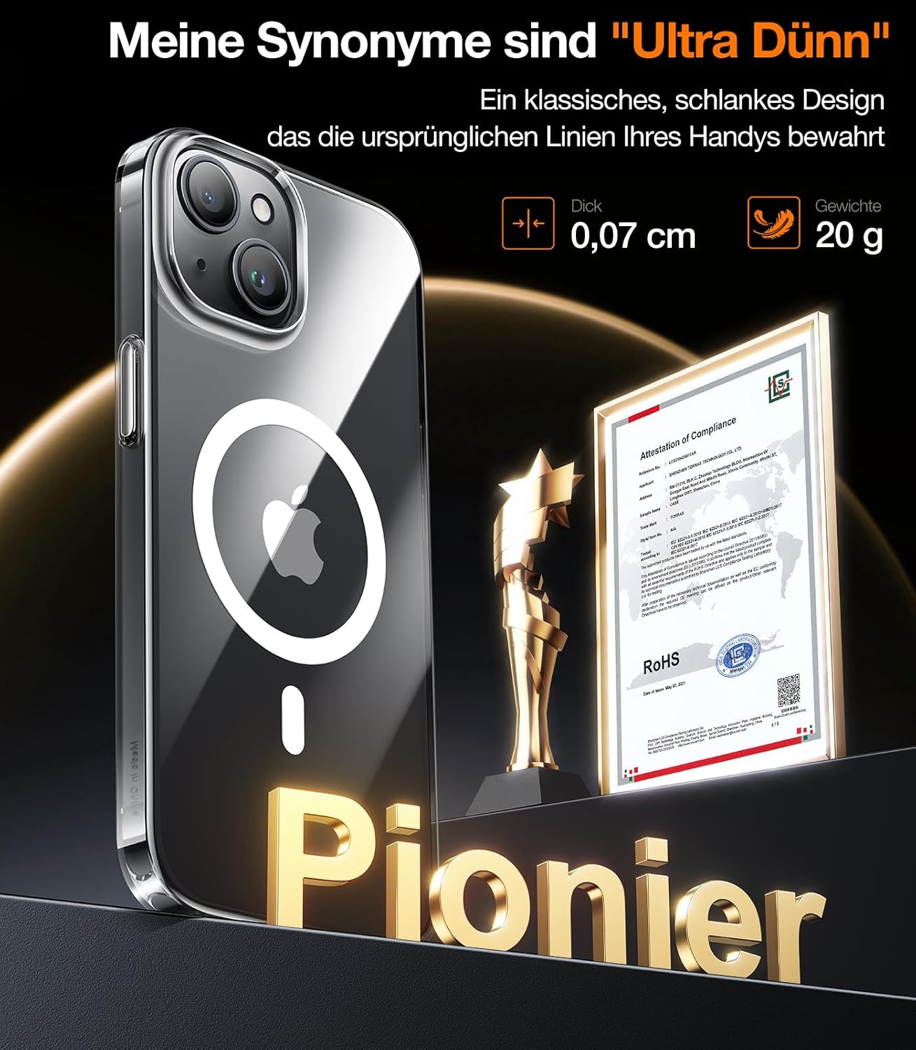 Ултратънък калъф за телефон TORRAS за iPhone 15, 2024, за MagSafe, магнитна сила № 1, абсолютно непожълтяващ, изключително удароустойчив, устойчив на надраскване, кадифен захват, тънък, прозрачен